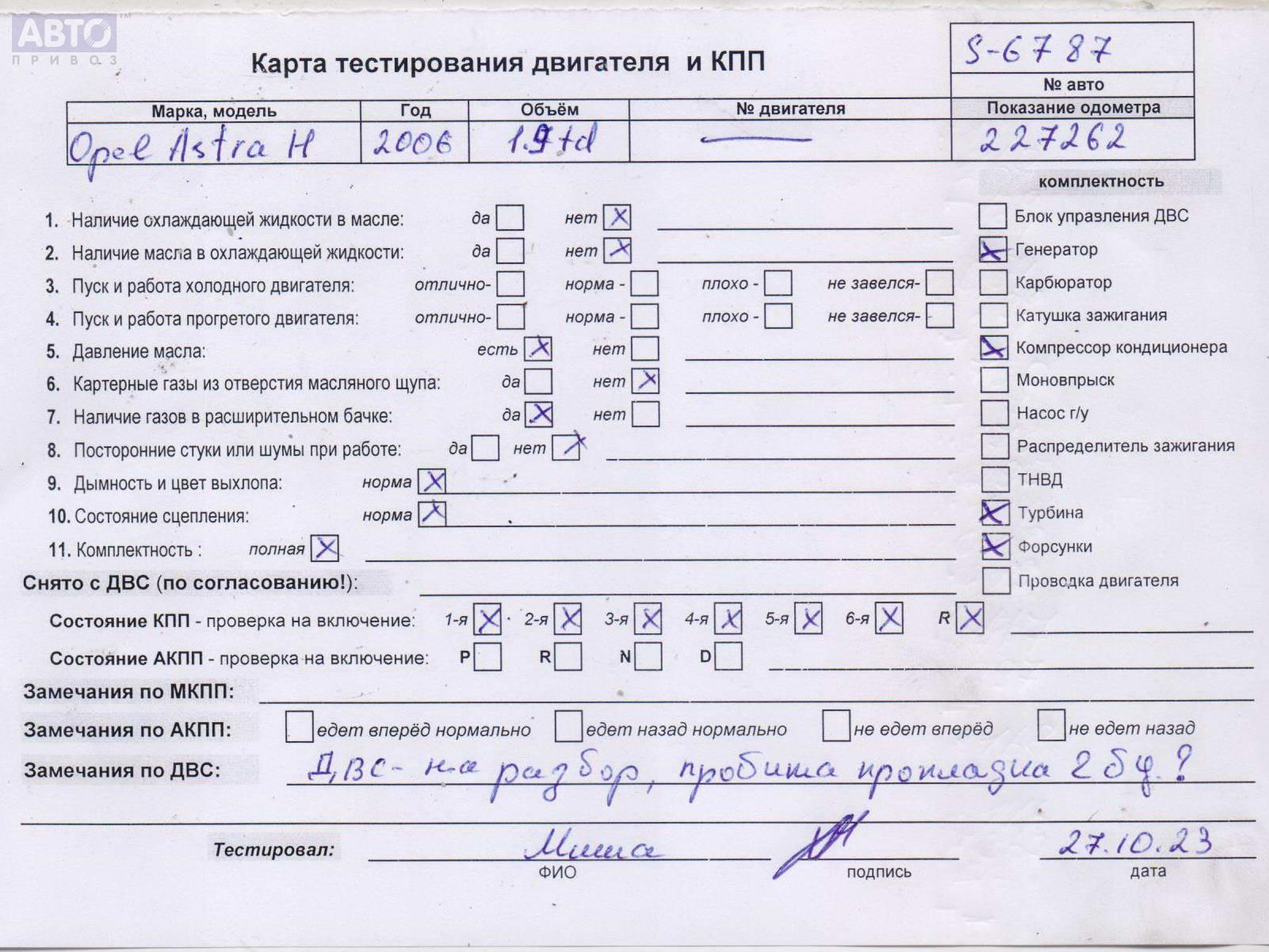 | Марка / Модель / Год: | Opel Astra H (2004-2009) 2006 |