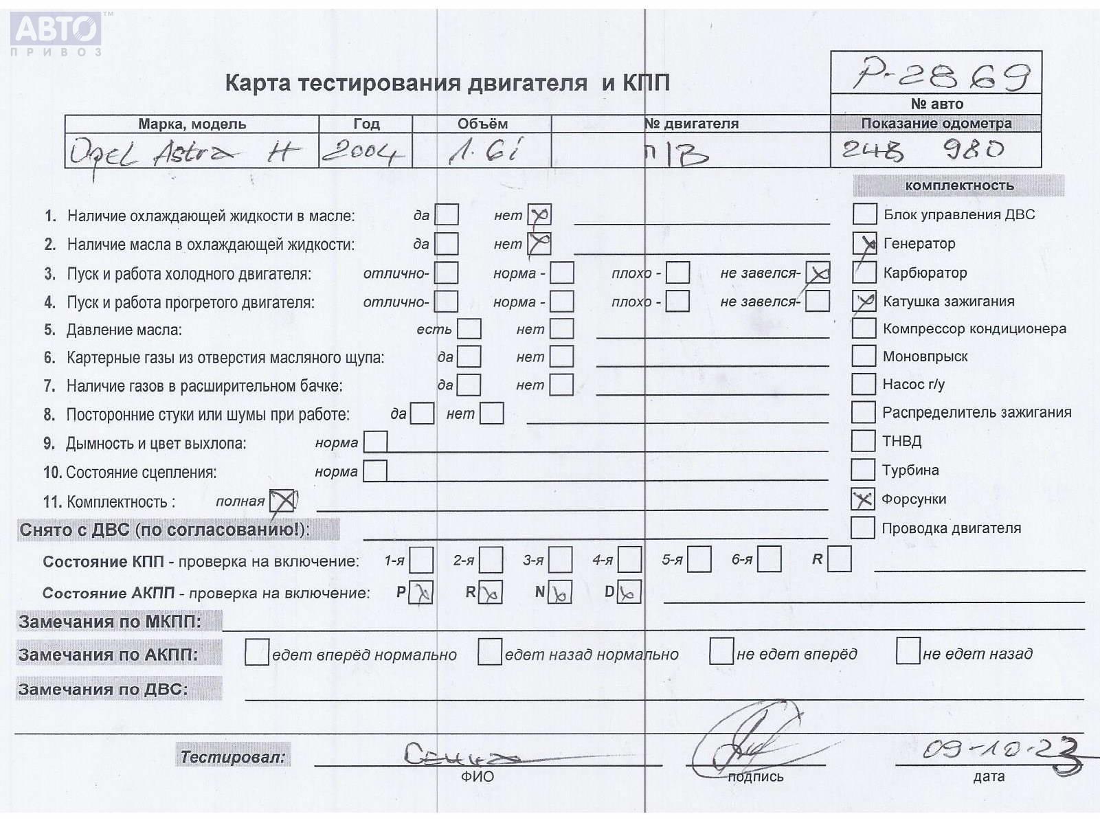 | Марка / Модель / Год: | Opel Astra H (2004-2009) 2004 |