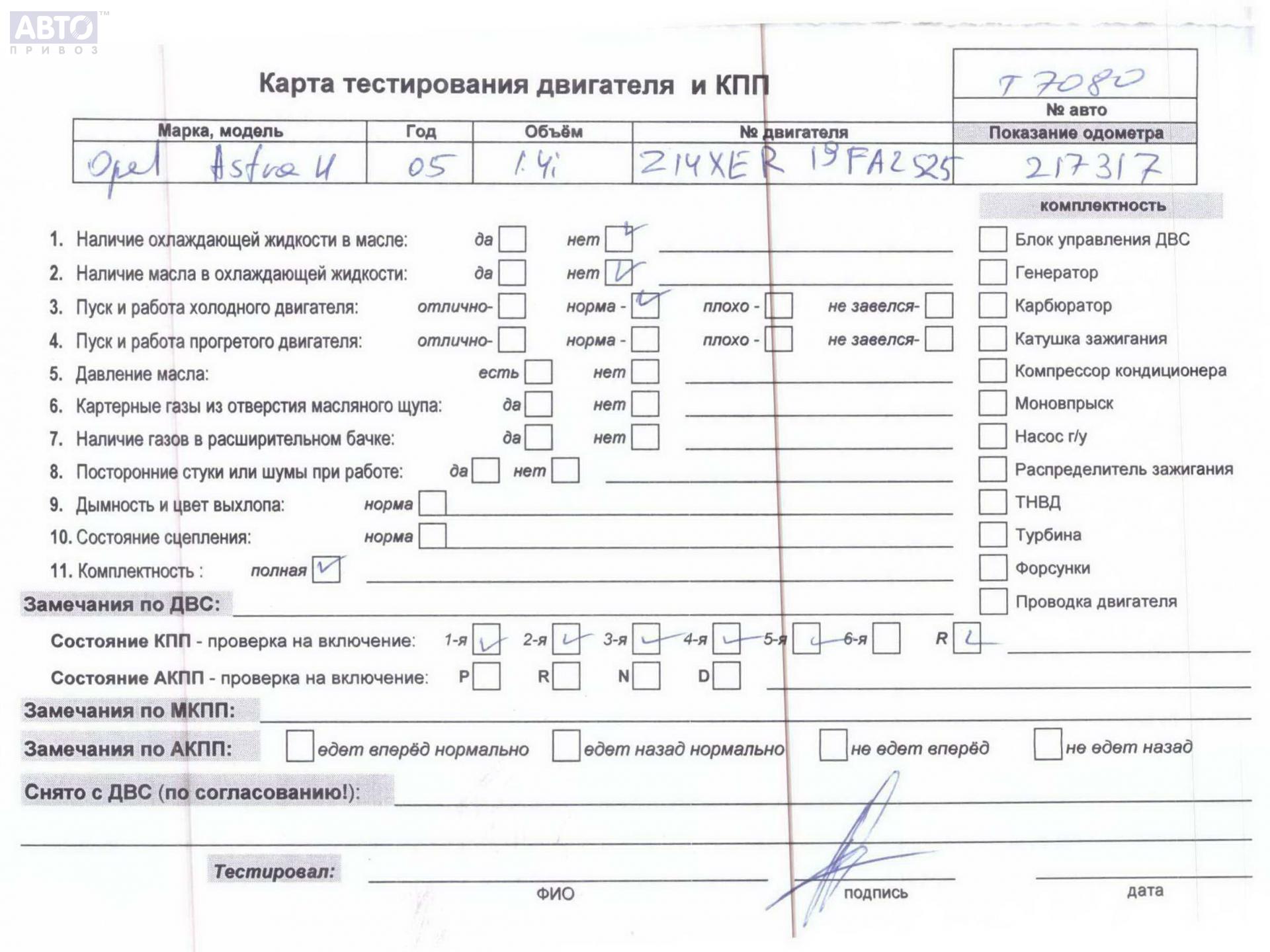 | Марка / Модель / Год: | Opel Astra H (2004-2009) 2005 |