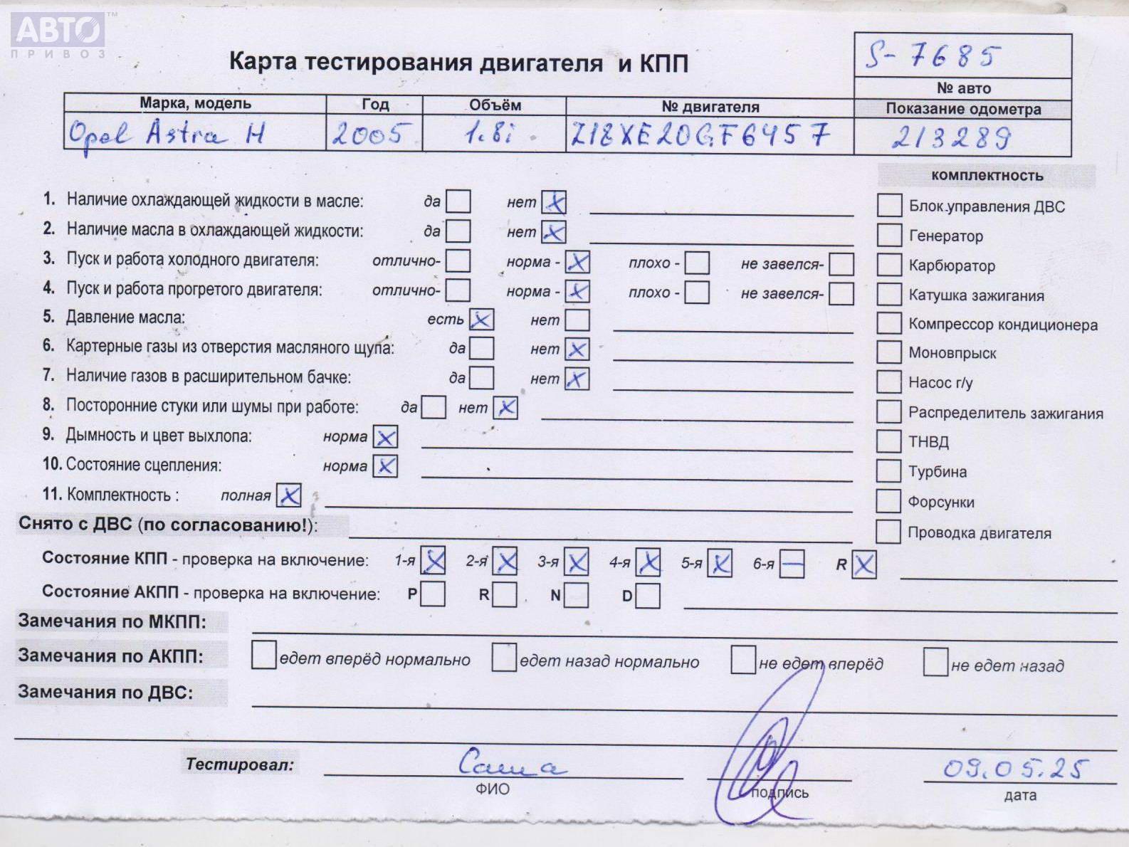 | Марка / Модель / Год: | Opel Astra H (2004-2009) 2005 |