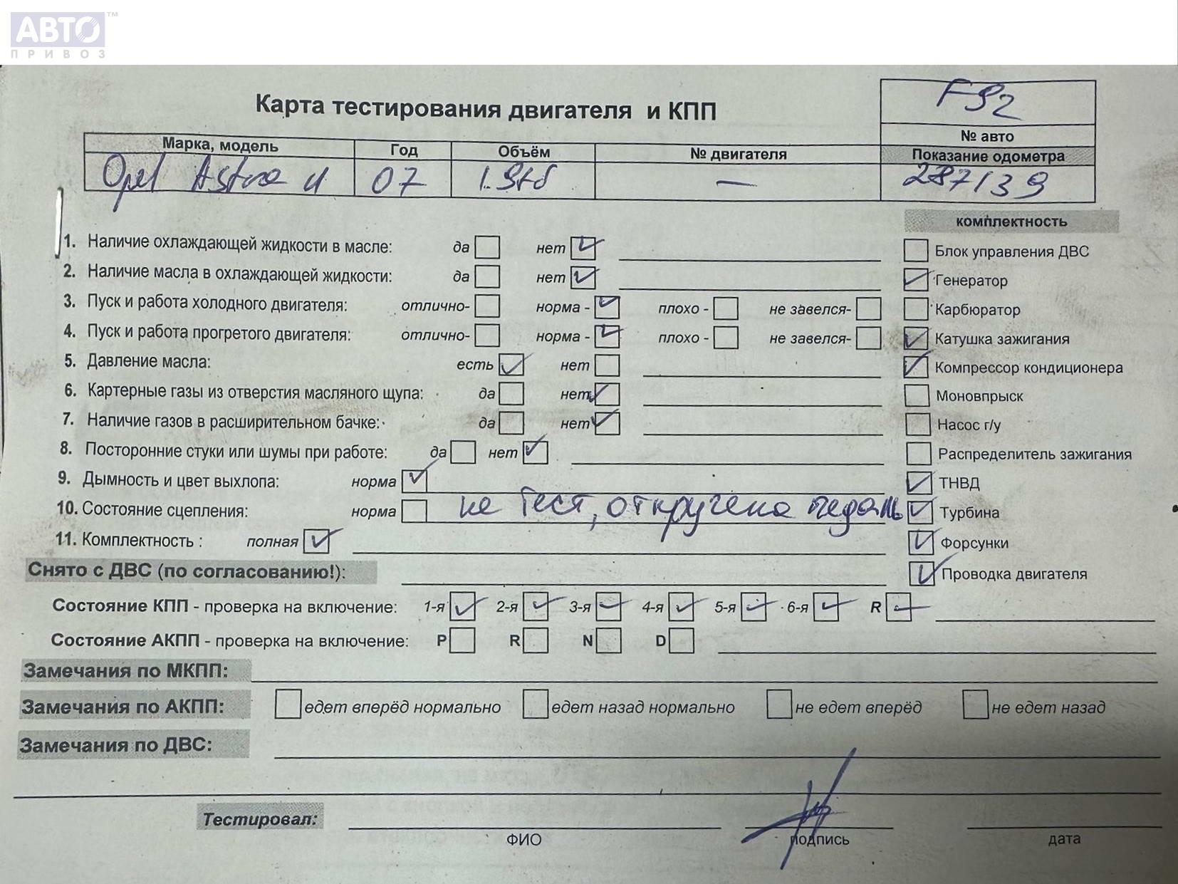 | Марка / Модель / Год: | Opel Astra H (2004-2009) 2007 |