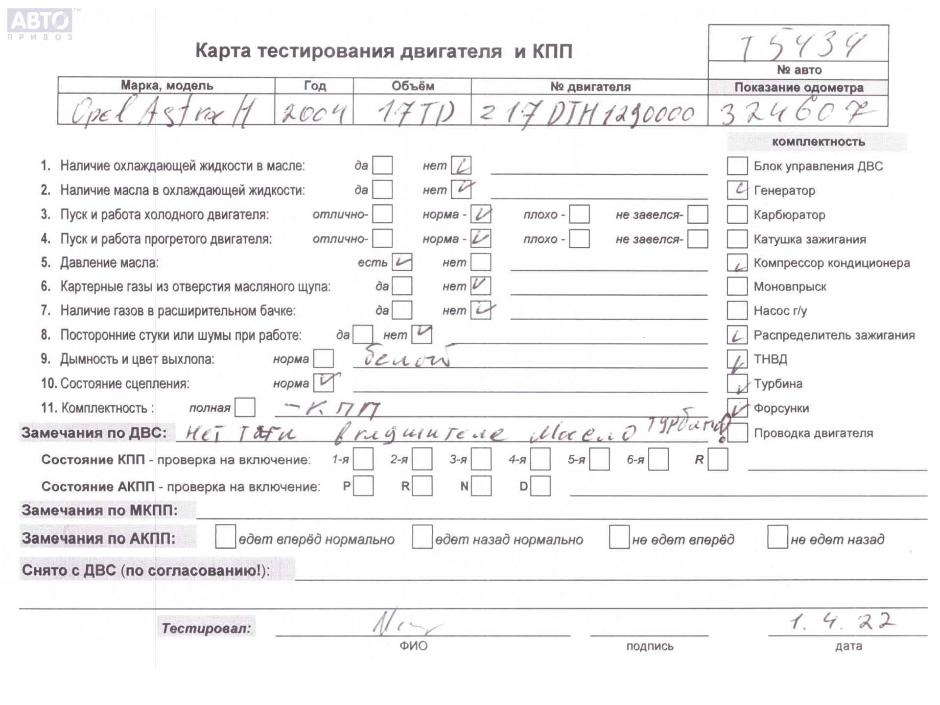 | Марка / Модель / Год: | Opel Astra H (2004-2009) 2005 |