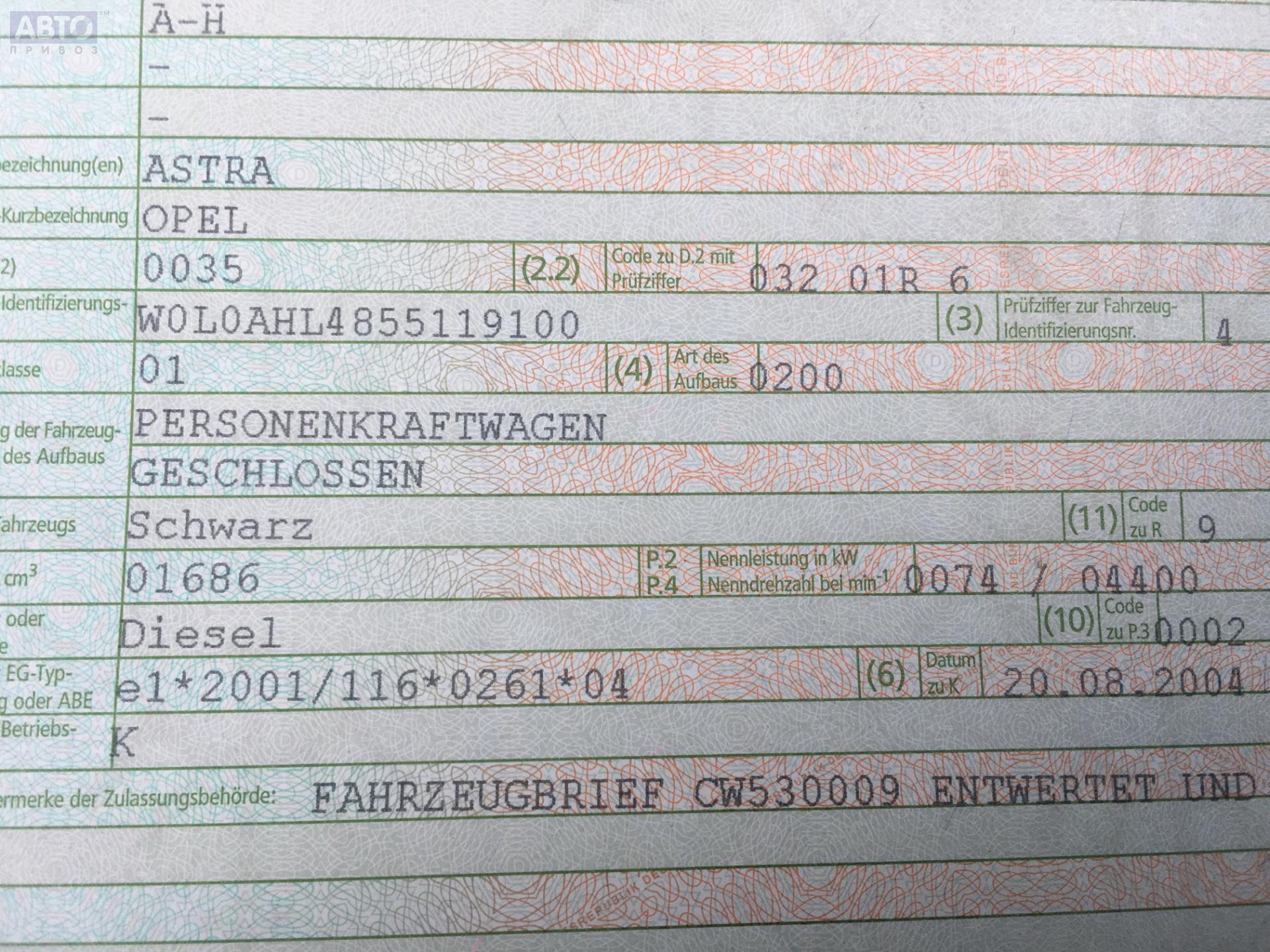 | Марка / Модель / Год: | Opel Astra H (2004-2009) 2005 |