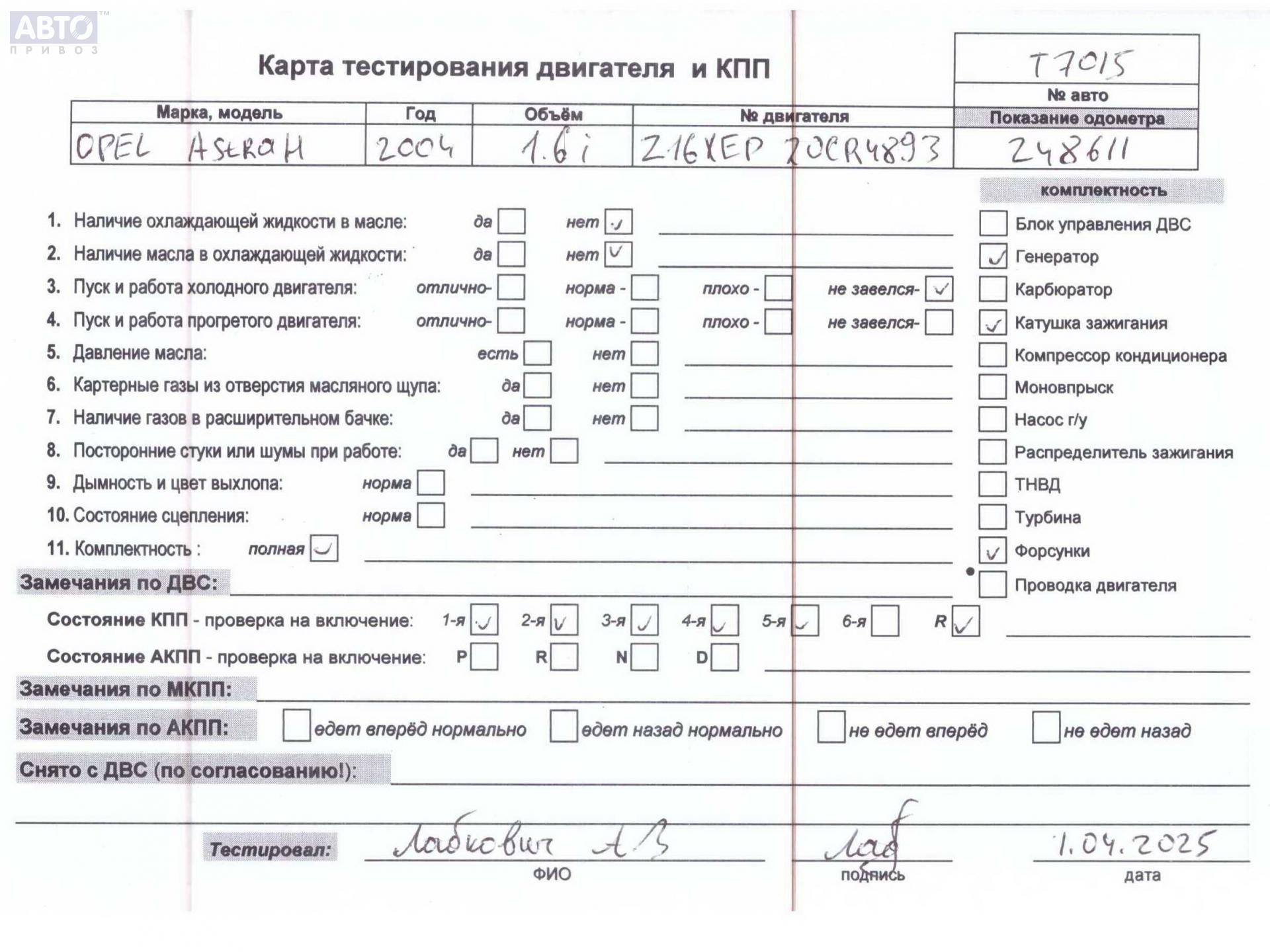 | Марка / Модель / Год: | Opel Astra H (2004-2009) 2004 |