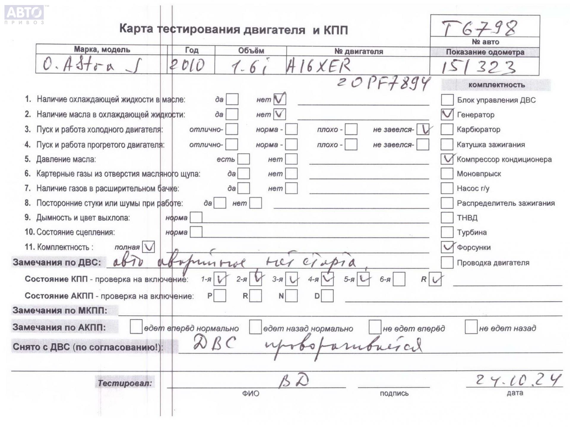| Автомобиль / VIN: | T6798 W0LPF6ED3AG060891 |
