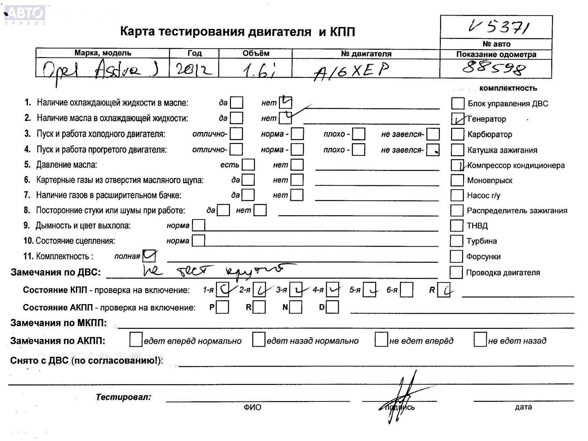 | Марка / Модель / Год: | Opel Astra J (2009-2015) 2012 |