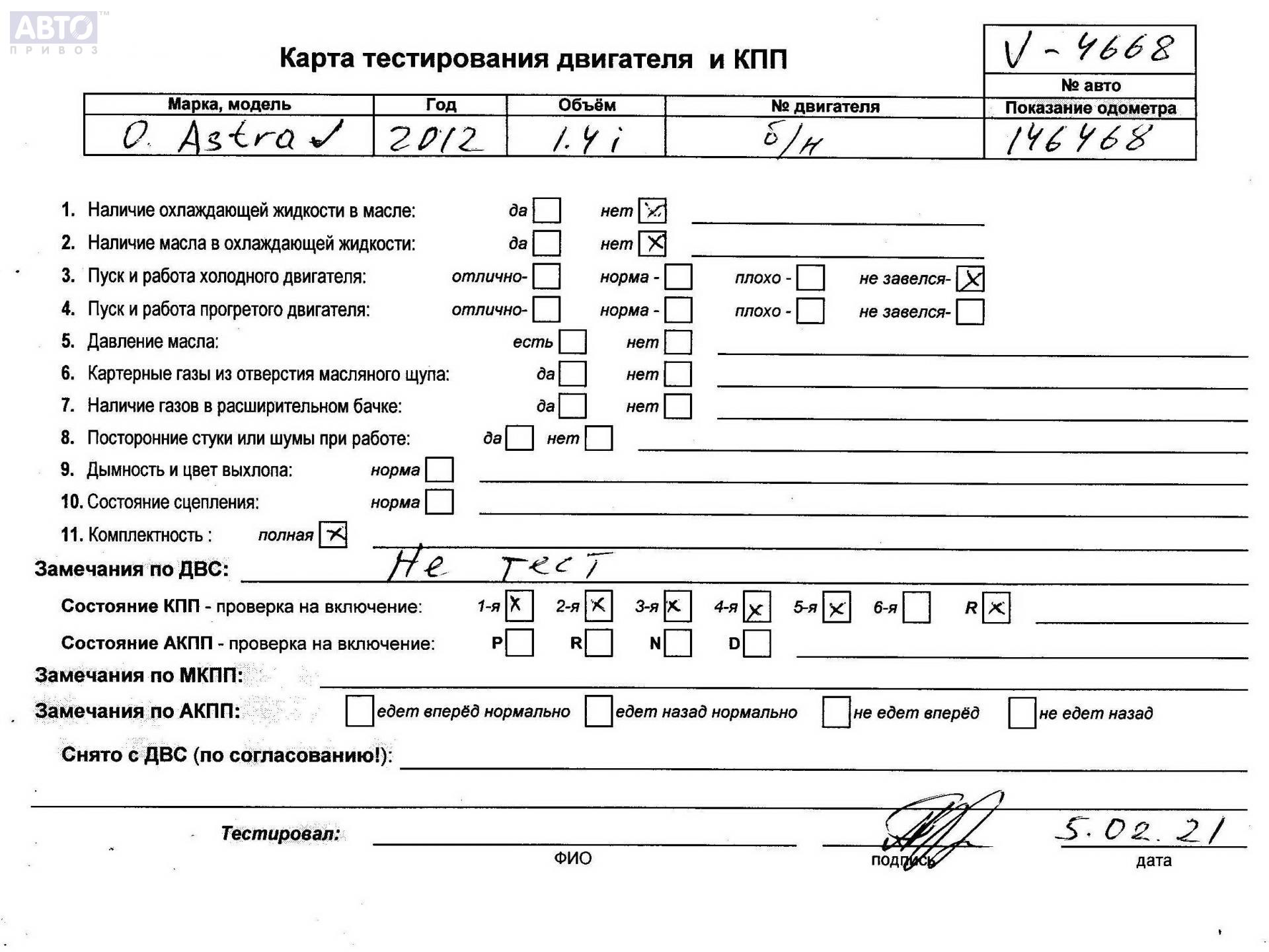 | Марка / Модель / Год: | Opel Astra J (2009-2015) 2012 |