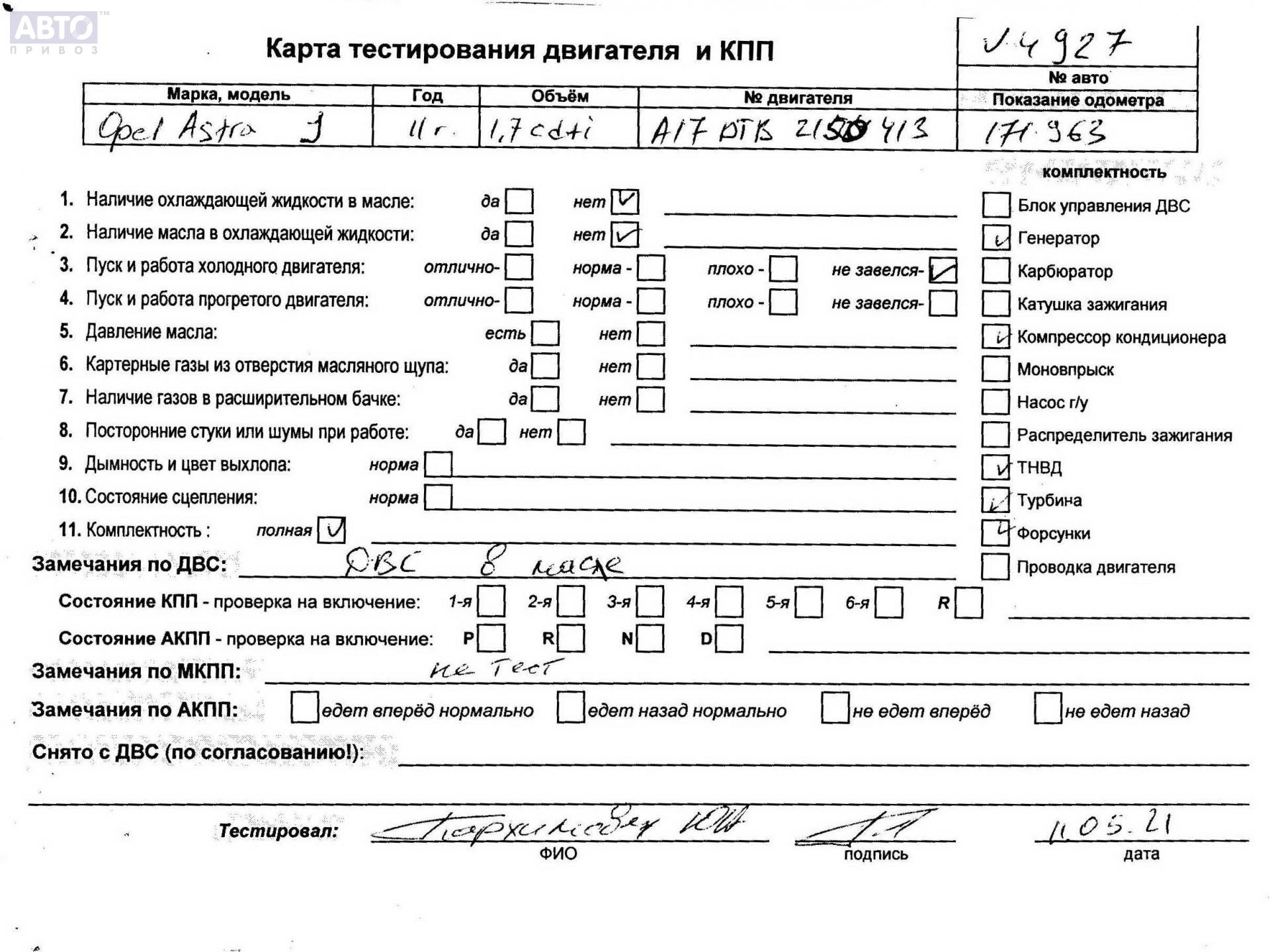 | Марка / Модель / Год: | Opel Astra J (2009-2015) 2010 |