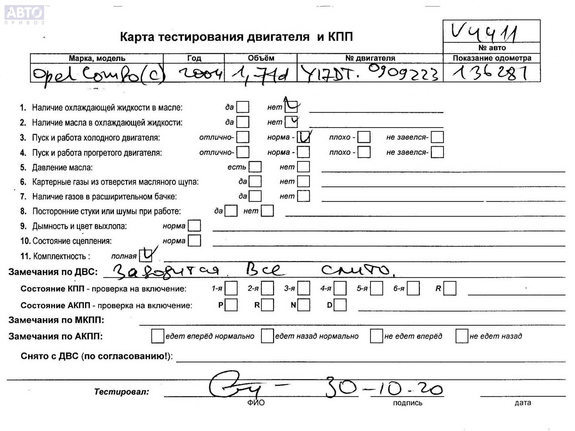 | Марка / Модель / Год: | Opel Combo C (2001-2011) 2004 |