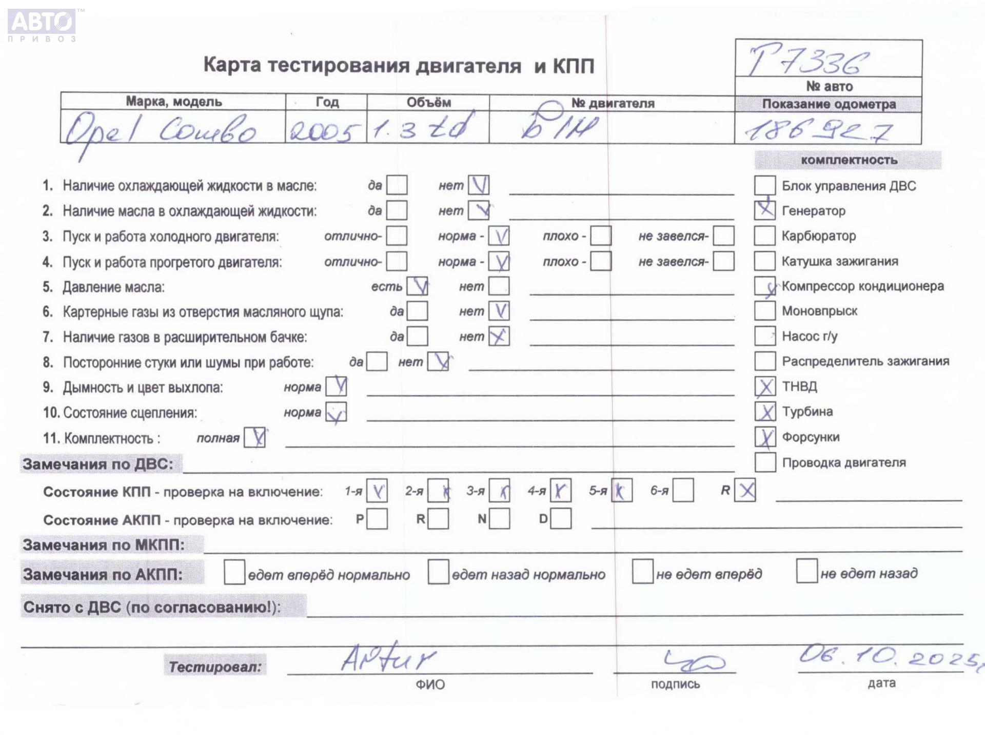 | Марка / Модель / Год: | Opel Combo C (2001-2011) 2005 |