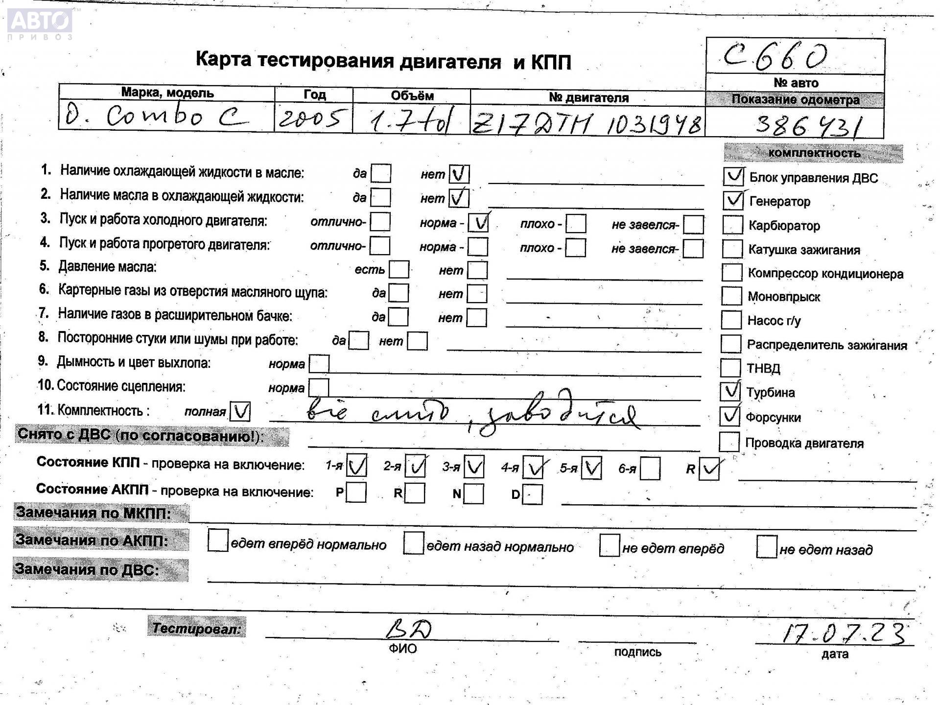 | Марка / Модель / Год: | Opel Combo C (2001-2011) 2005 |