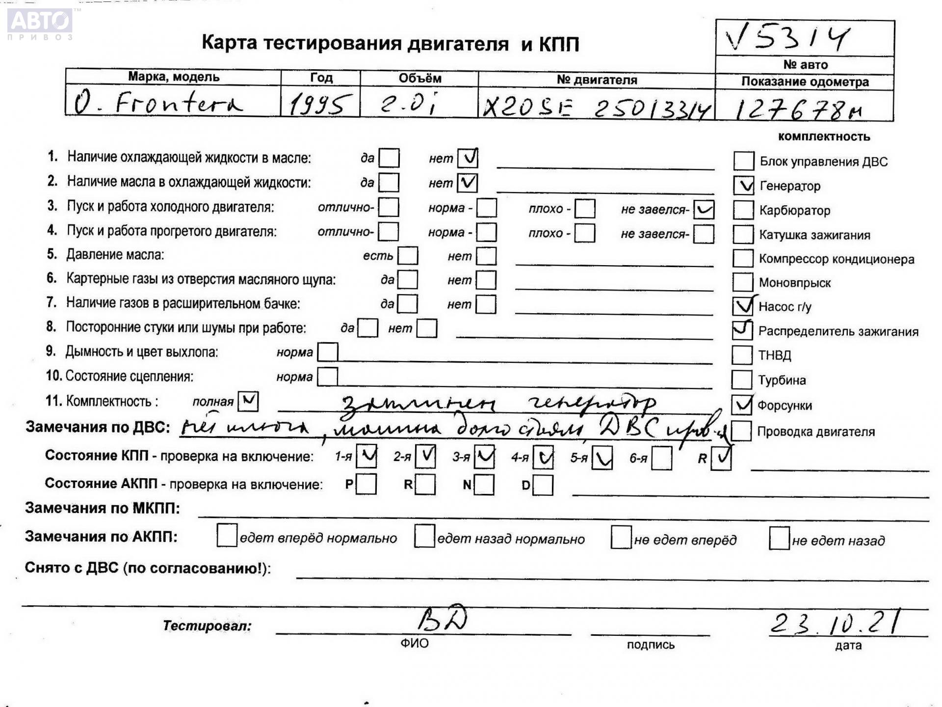 | Марка / Модель / Год: | Opel Frontera A (1989-1997) 1995 |