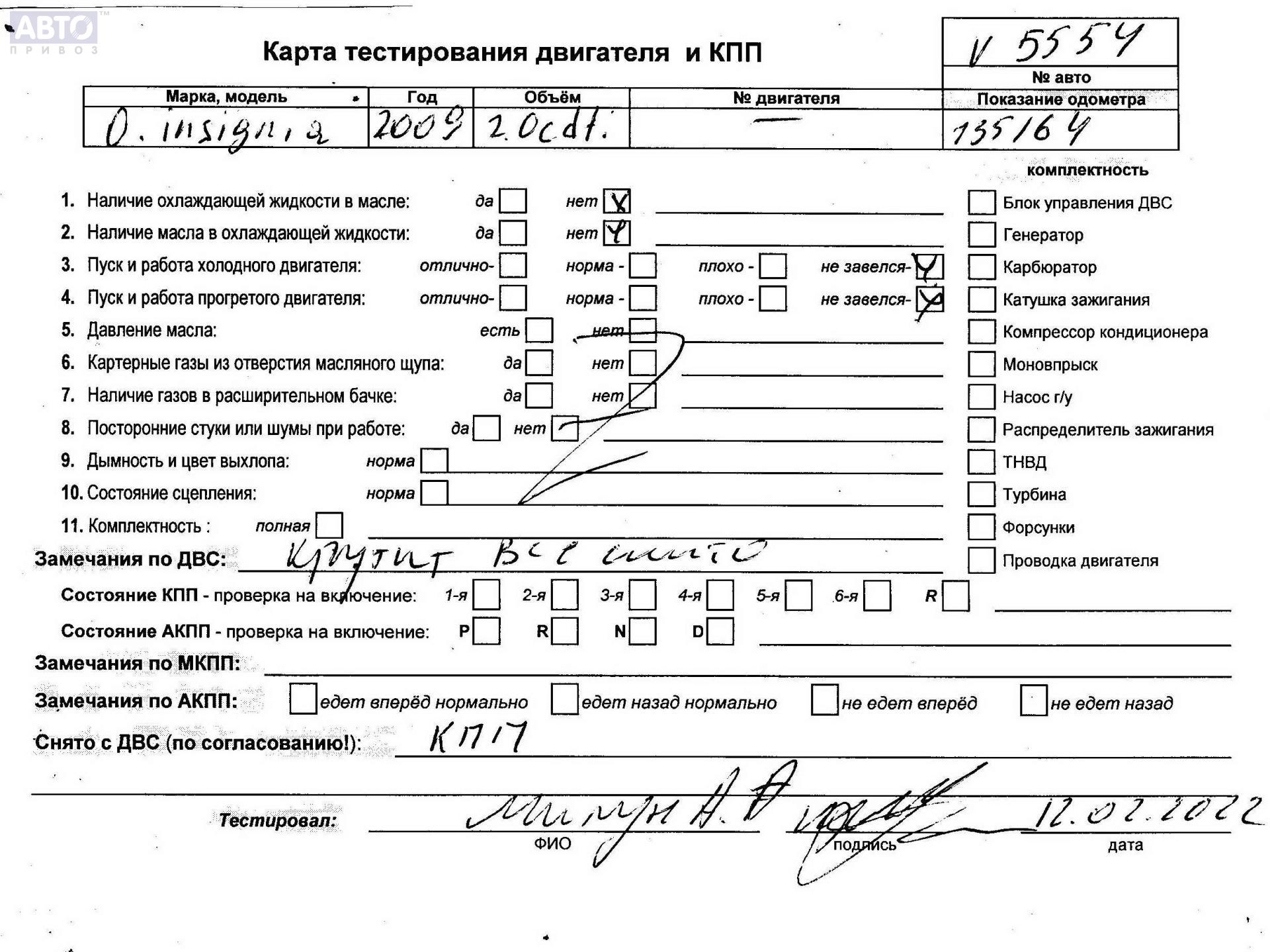| Марка / Модель / Год: | Opel Insignia A (2008-2017) 2009 |