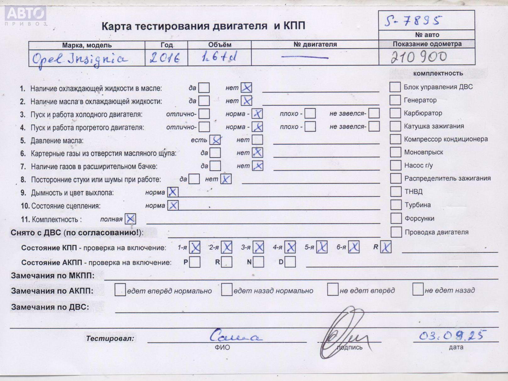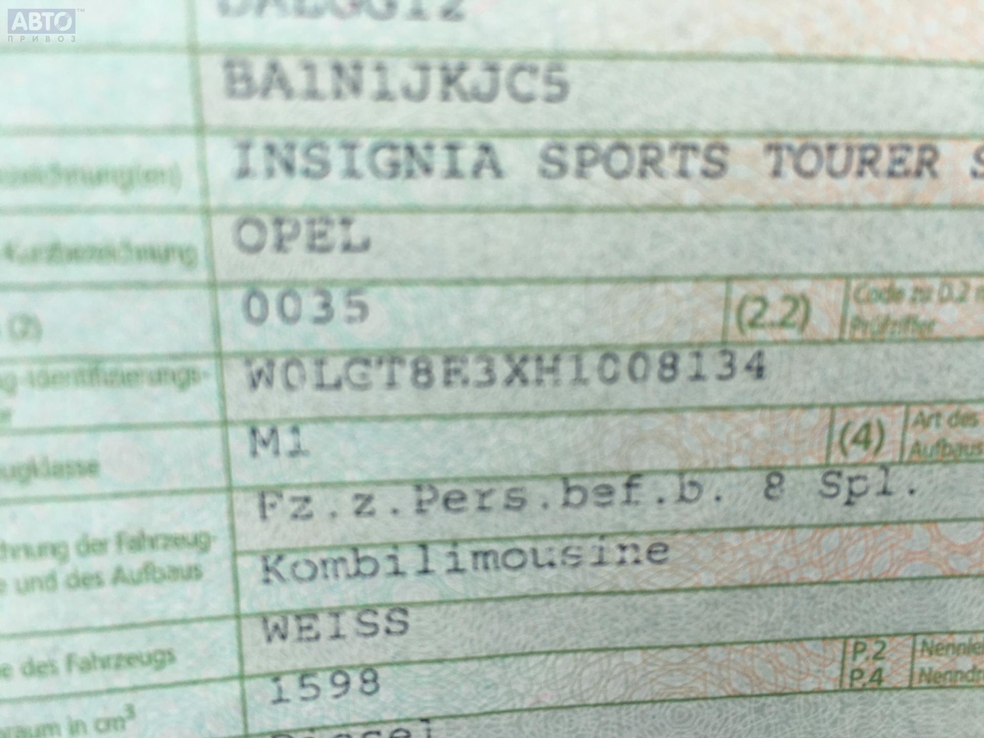 | Марка / Модель / Год: | Opel Insignia A (2008-2017) 2016 |