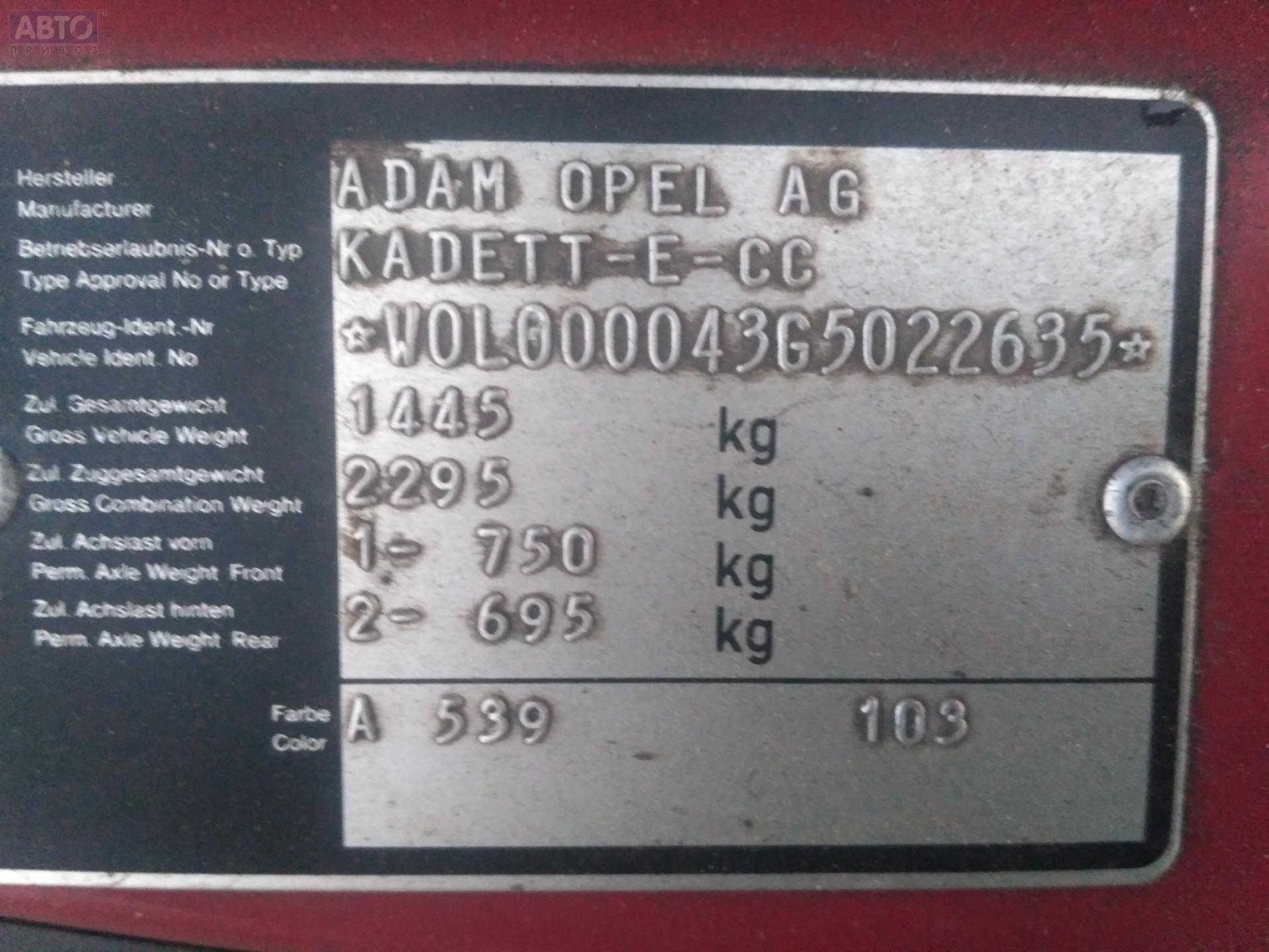 | Марка / Модель / Год: | Opel Kadett E (1984-1993) 1986 |