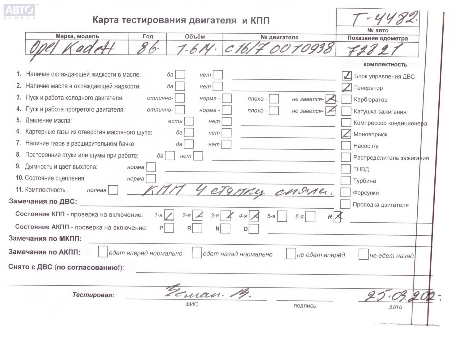 | Марка / Модель / Год: | Opel Kadett E (1984-1993) 1986 |