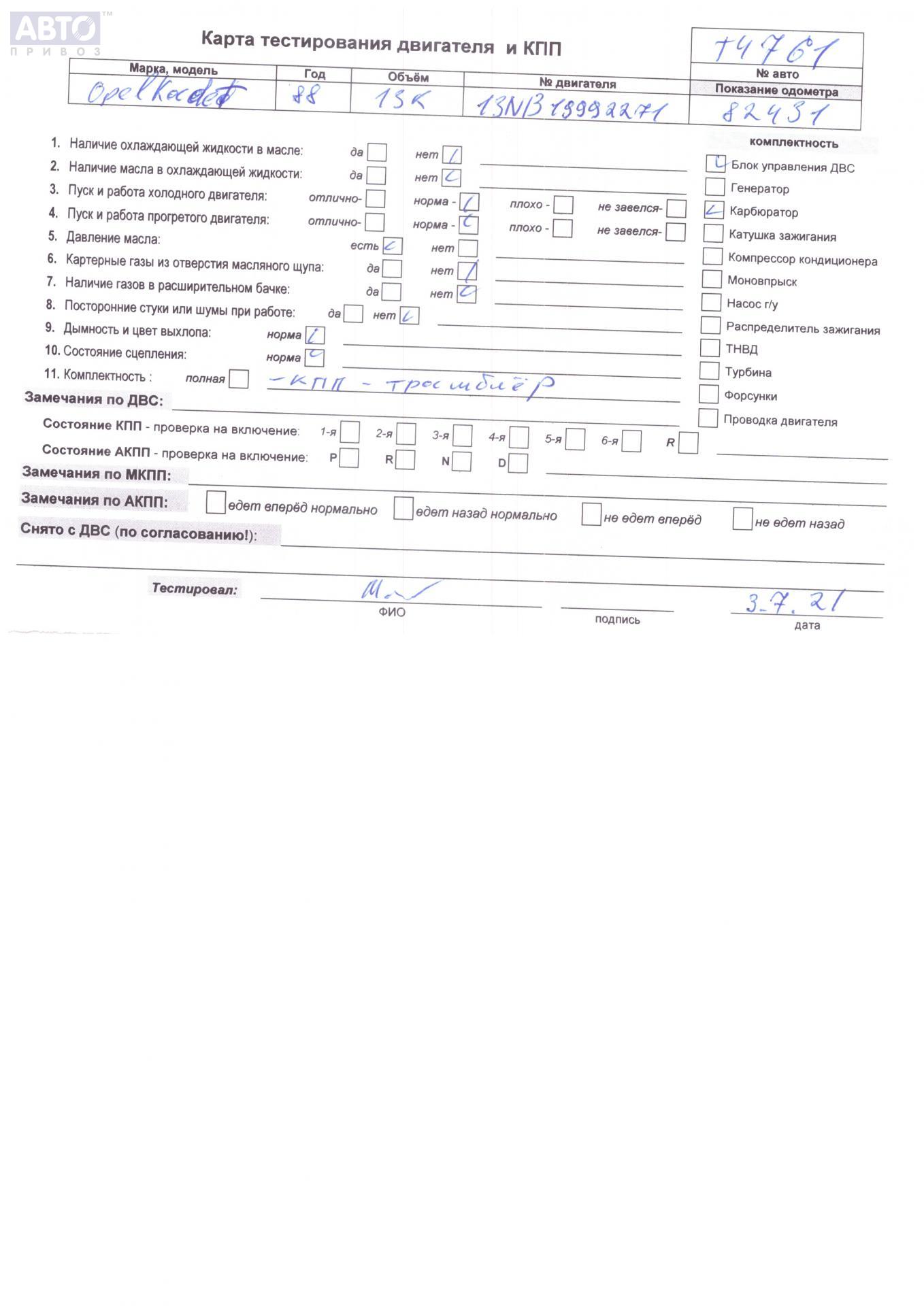 | Марка / Модель / Год: | Opel Kadett E (1984-1993) 1988 |