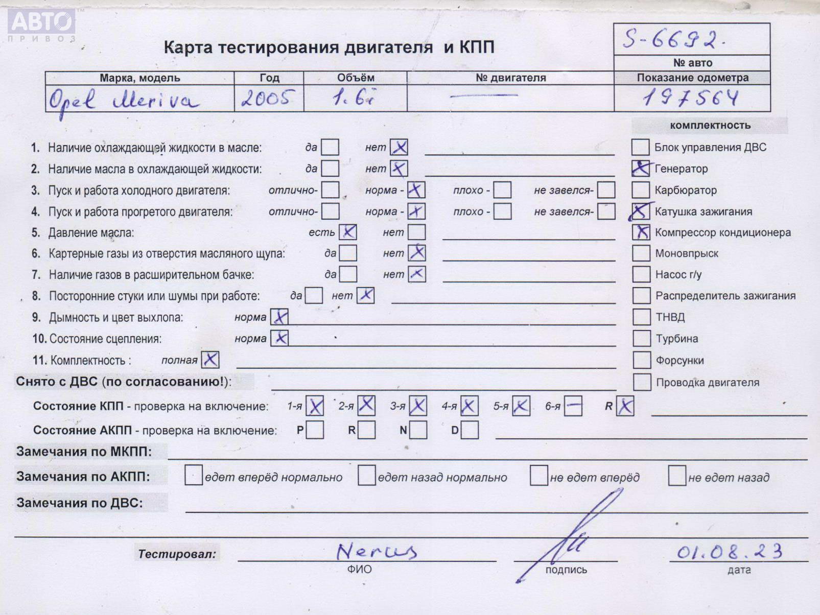| Марка / Модель / Год: | Opel Meriva A (2003-2010) 2005 |