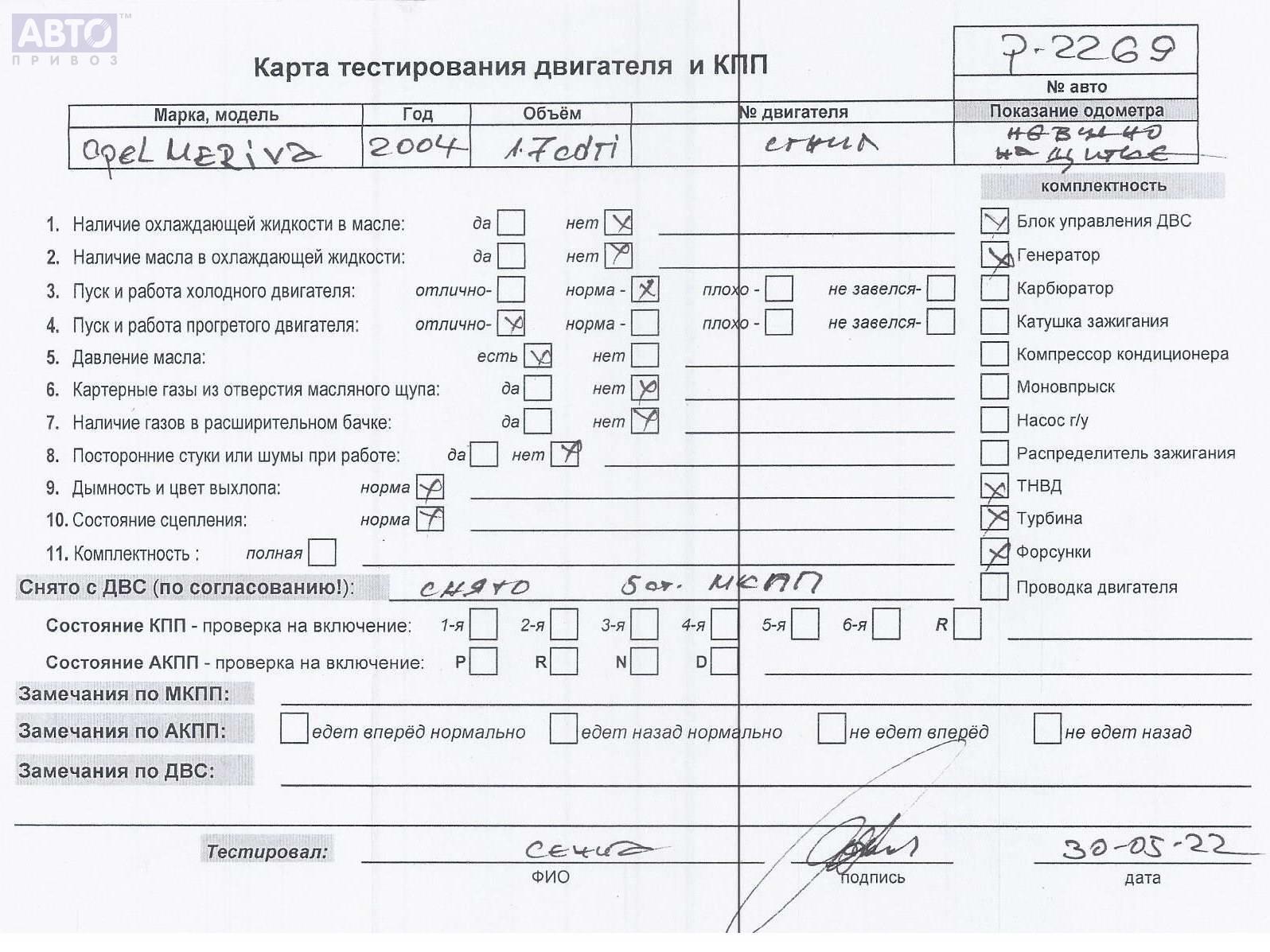 | Марка / Модель / Год: | Opel Meriva A (2003-2010) 2004 |