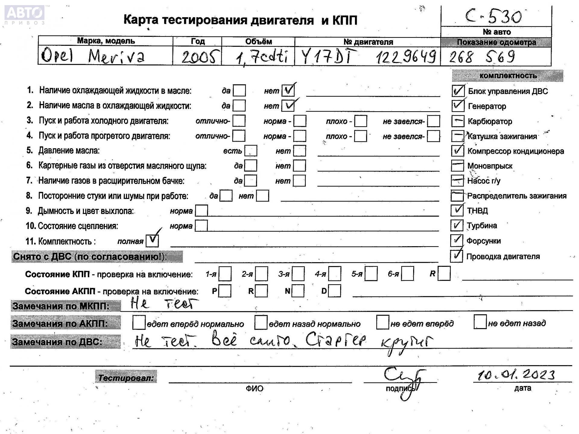 | Марка / Модель / Год: | Opel Meriva A (2003-2010) 2005 |