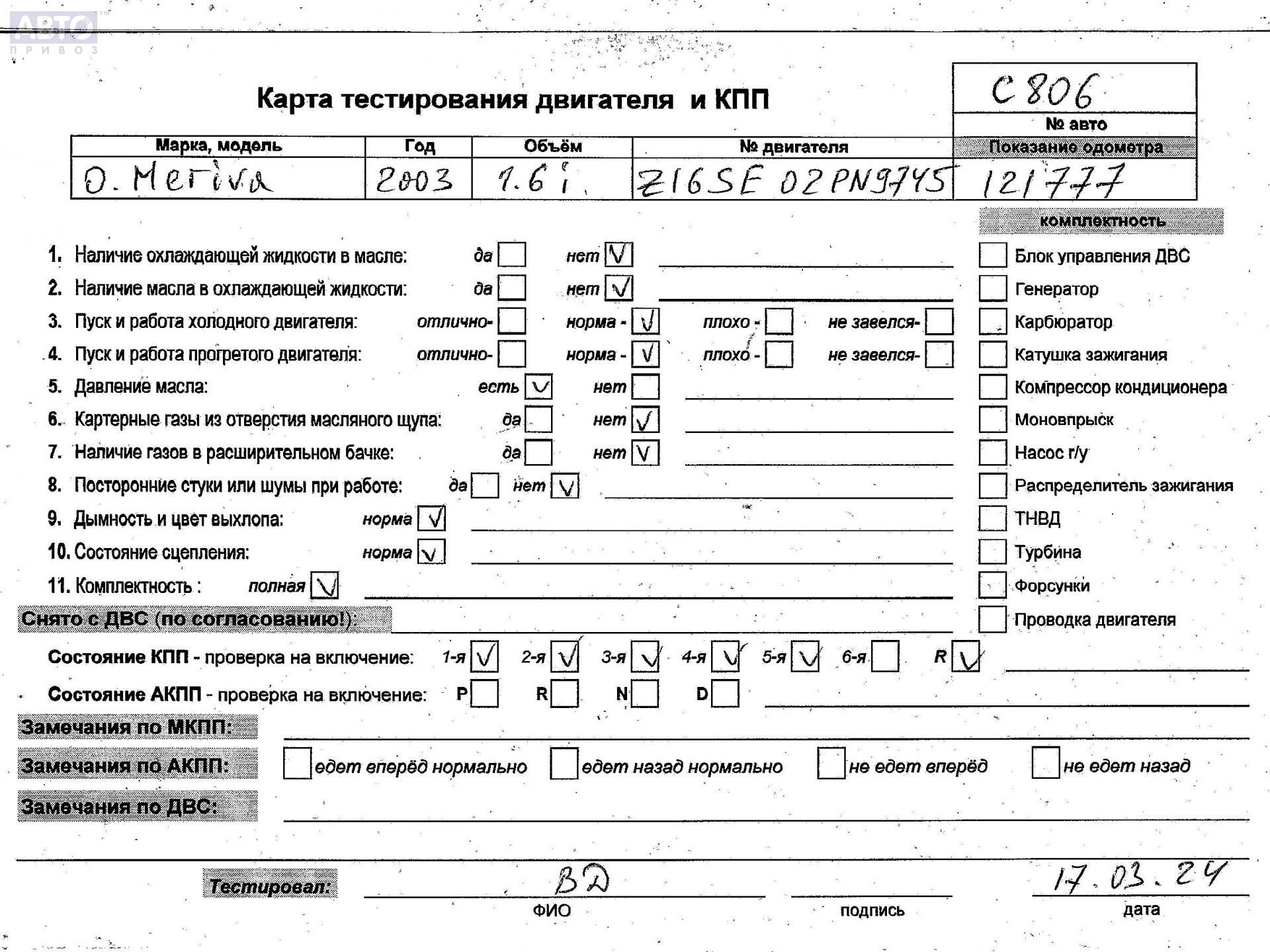 | Марка / Модель / Год: | Opel Meriva A (2003-2010) 2003 |