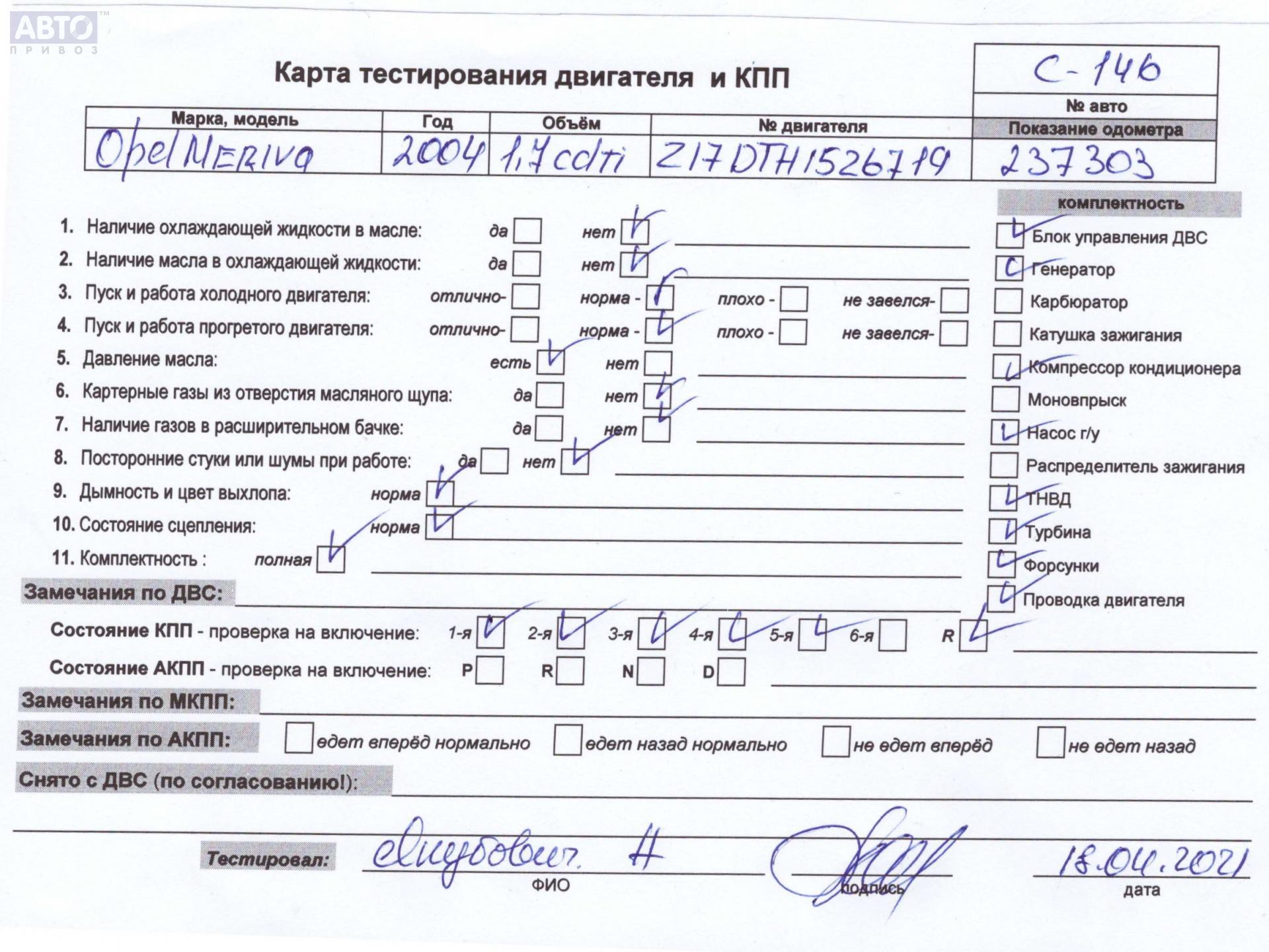 | Марка / Модель / Год: | Opel Meriva A (2003-2010) 2006 |