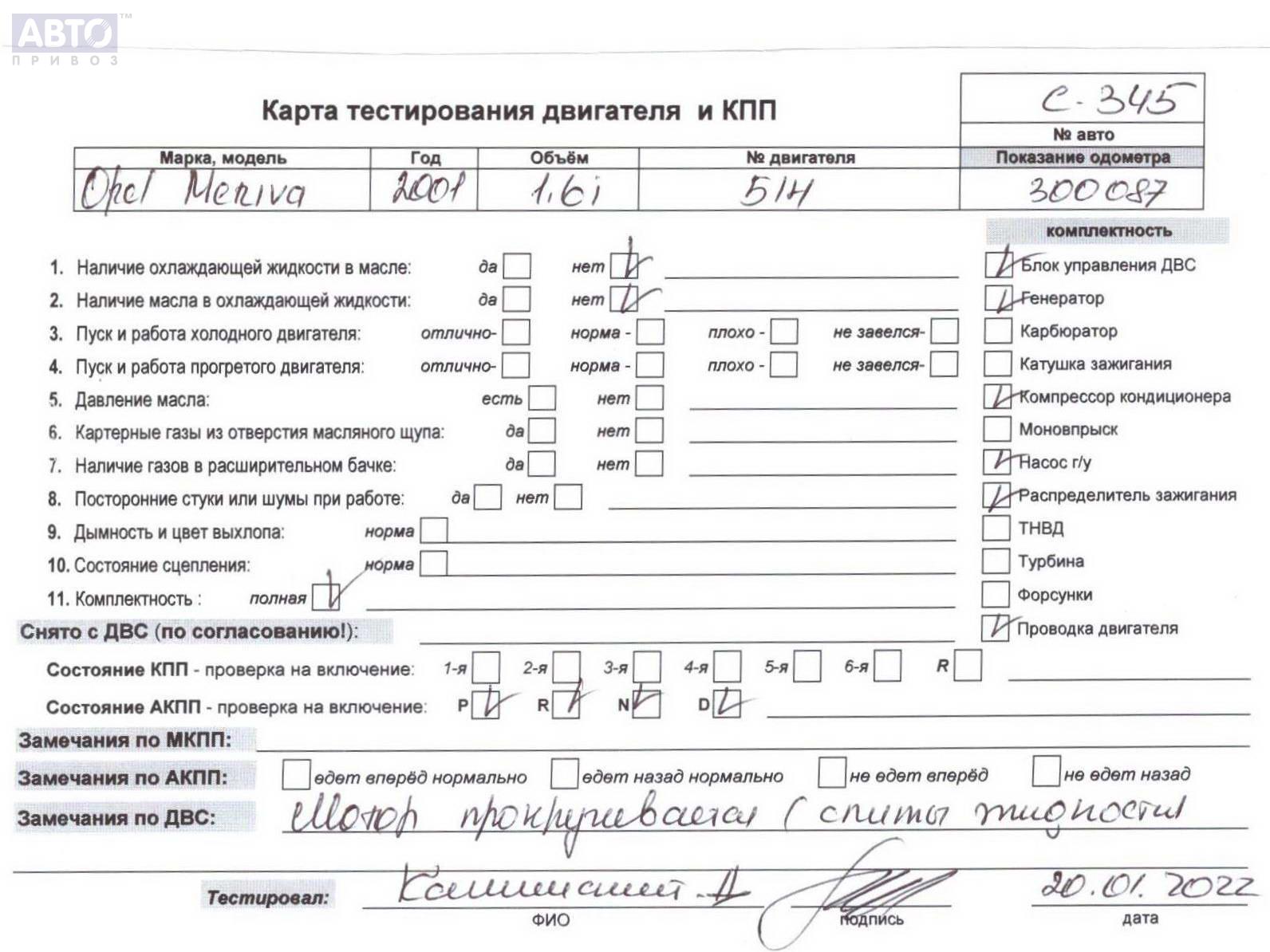 | Марка / Модель / Год: | Opel Meriva A (2003-2010) 2004 |