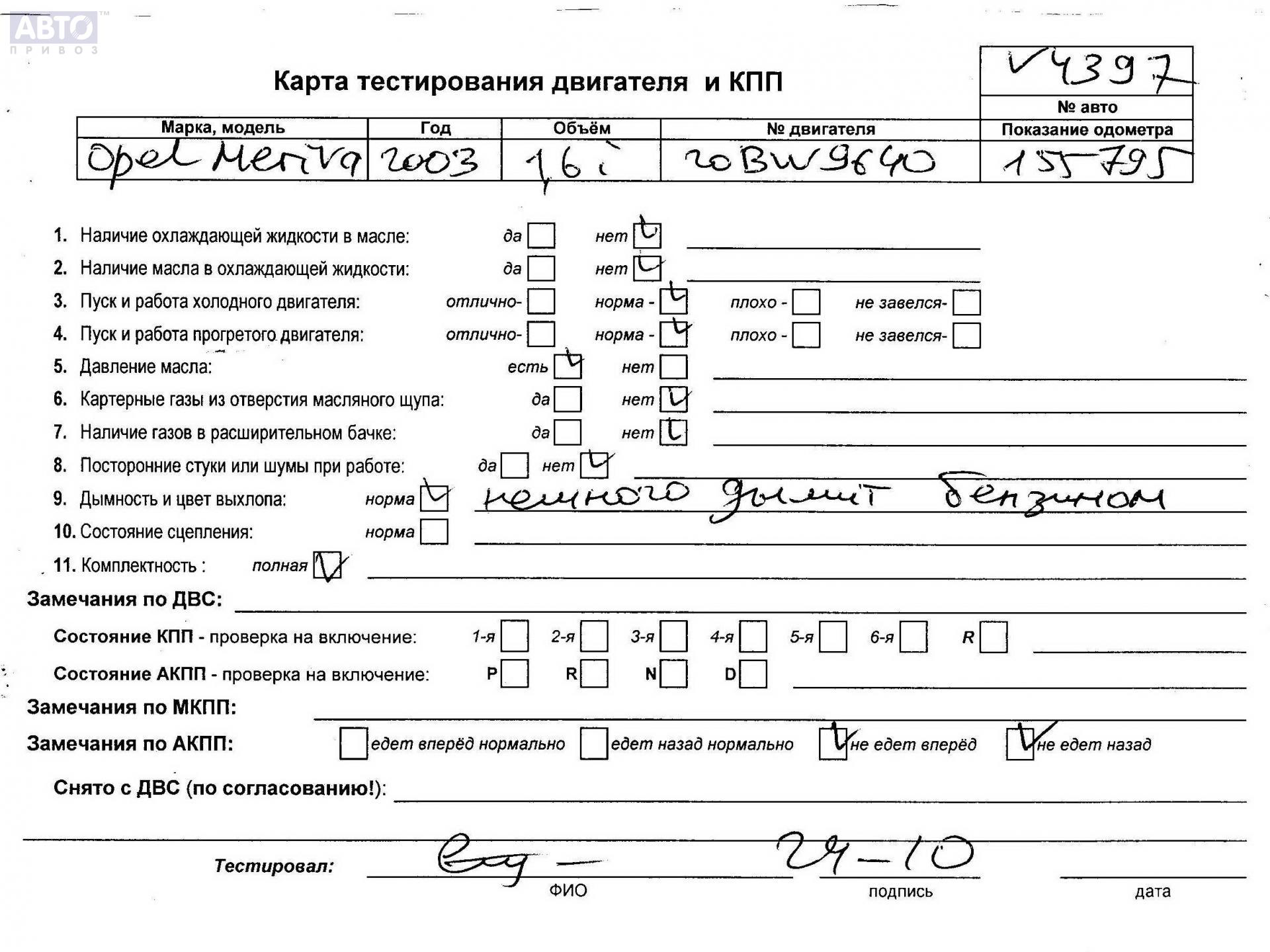 | Марка / Модель / Год: | Opel Meriva A (2003-2010) 2003 |