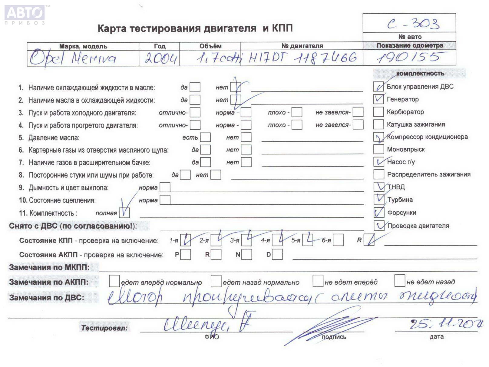 | Марка / Модель / Год: | Opel Meriva A (2003-2010) 2004 |