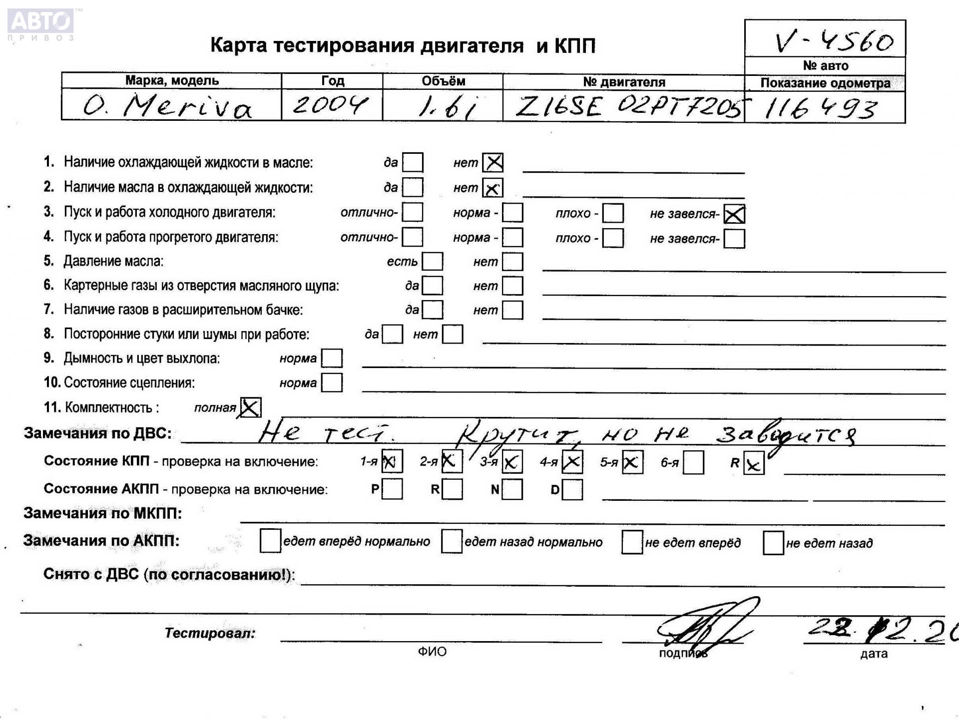 | Марка / Модель / Год: | Opel Meriva A (2003-2010) 2004 |