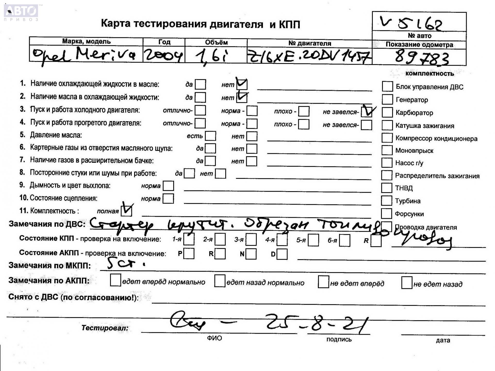 | Марка / Модель / Год: | Opel Meriva A (2003-2010) 2004 |