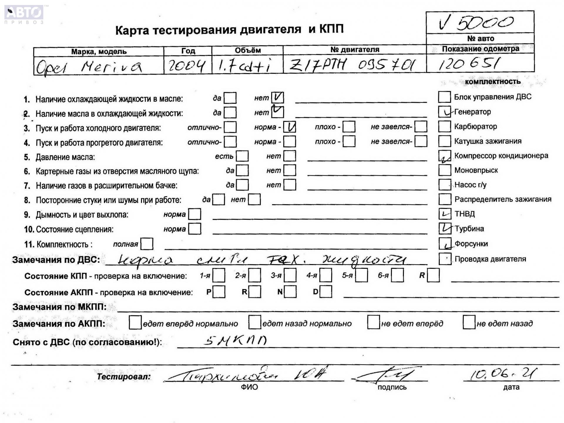 | Марка / Модель / Год: | Opel Meriva A (2003-2010) 2004 |