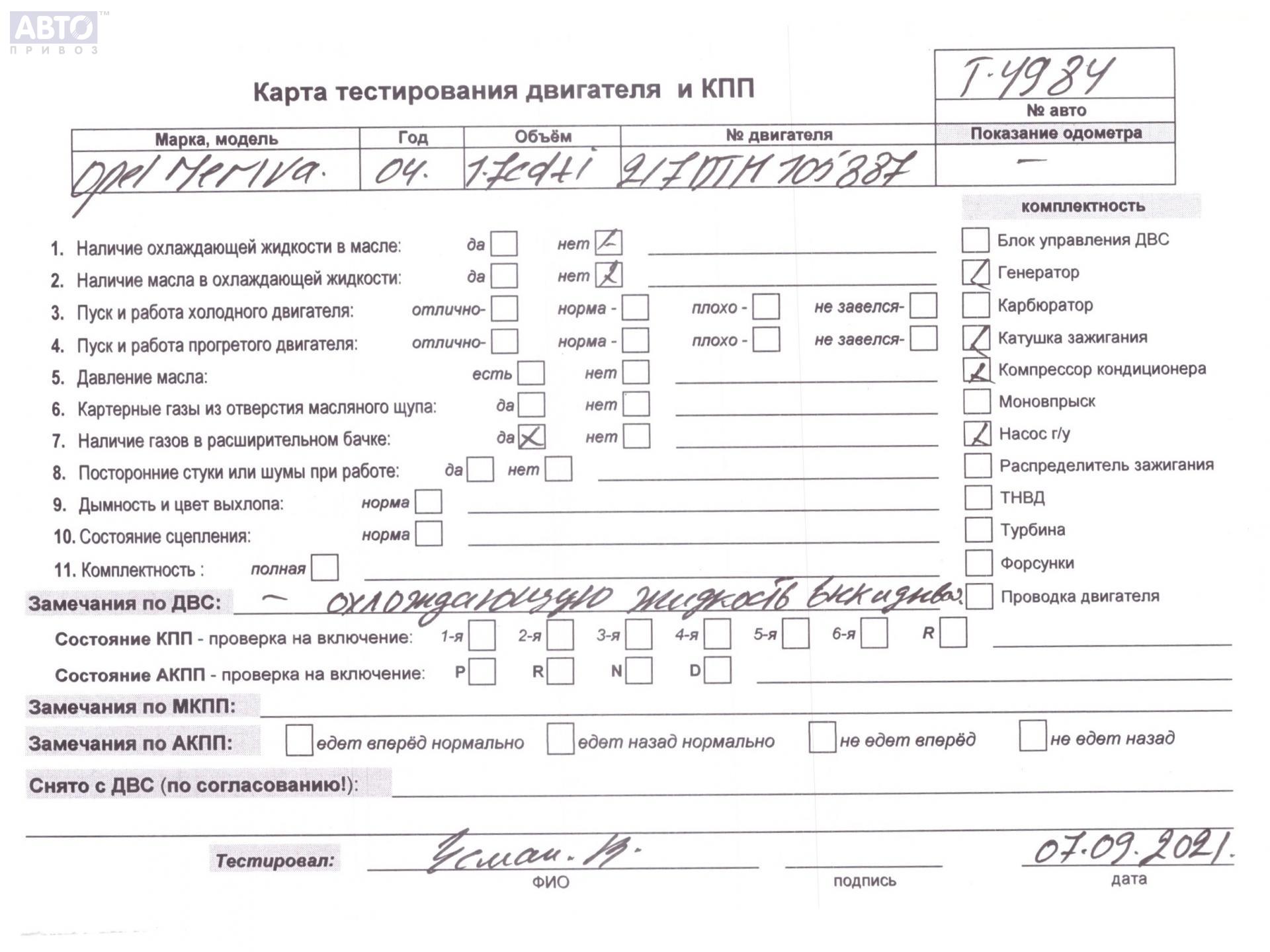 | Марка / Модель / Год: | Opel Meriva A (2003-2010) 2004 |