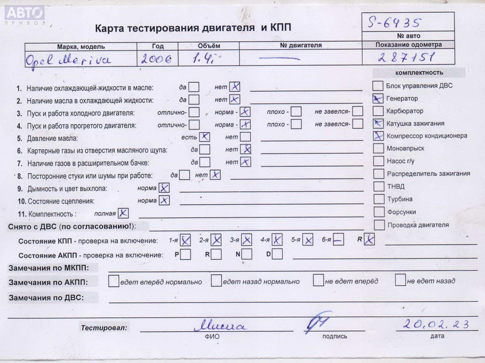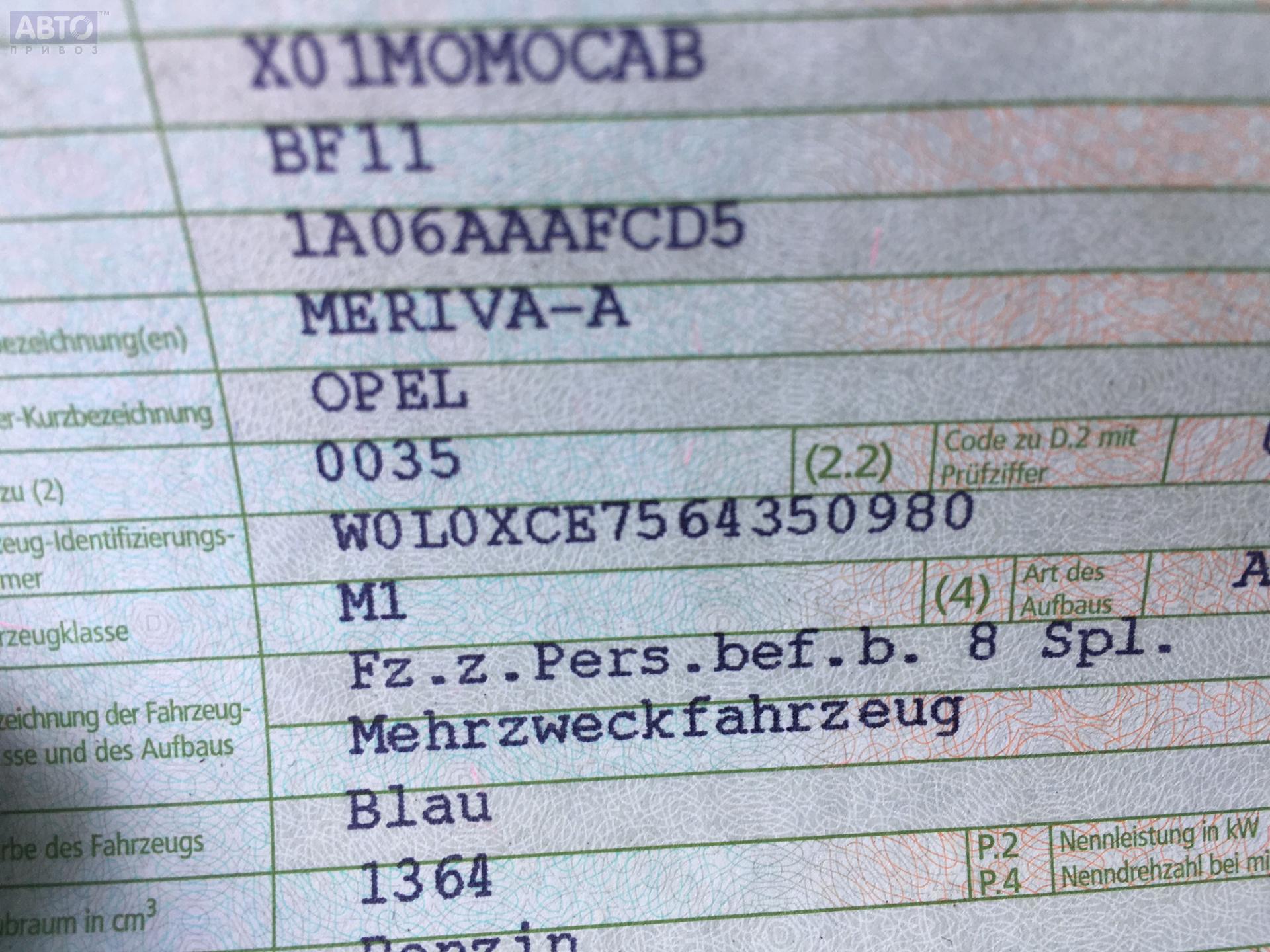 | Марка / Модель / Год: | Opel Meriva A (2003-2010) 2006 |