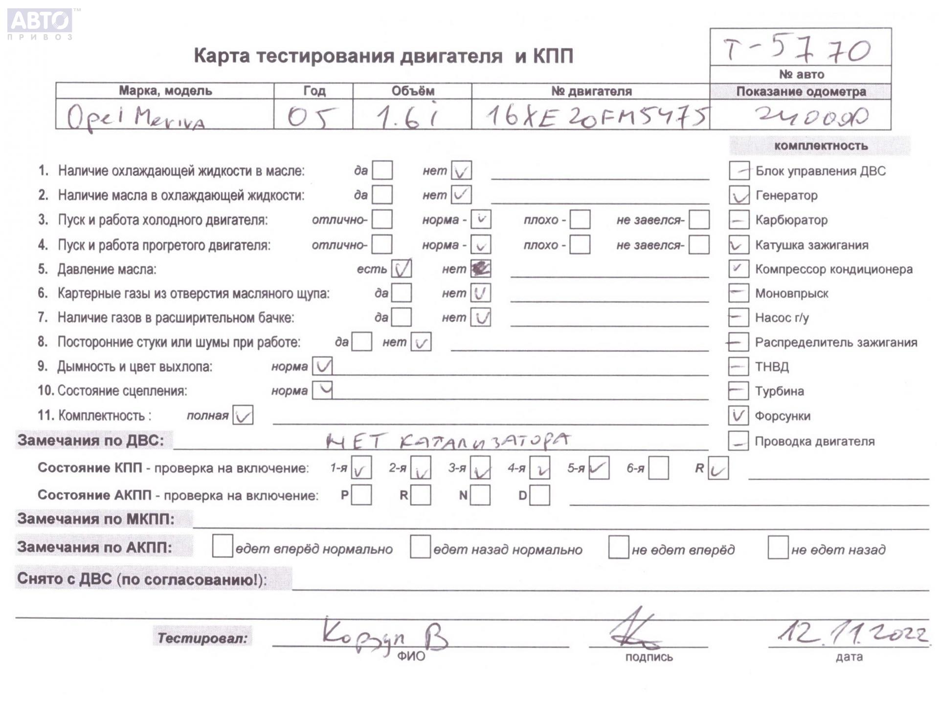 | Марка / Модель / Год: | Opel Meriva A (2003-2010) 2005 |