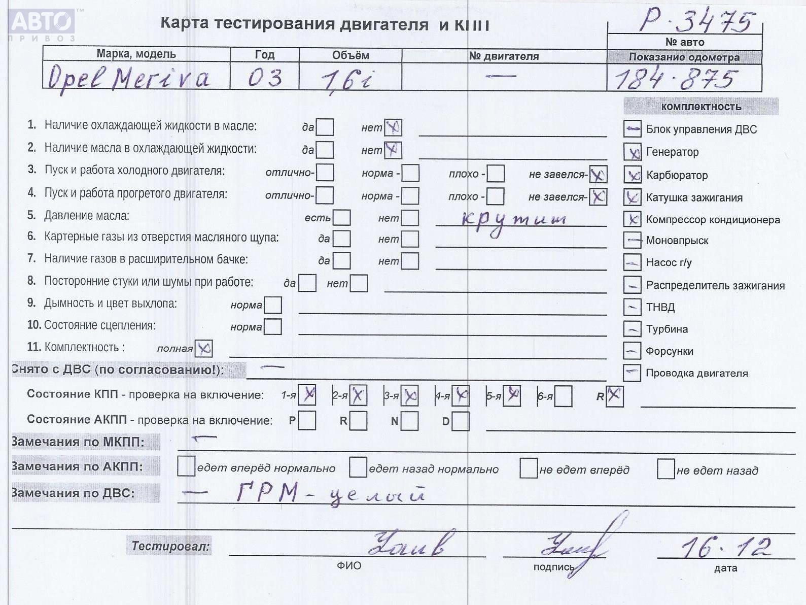 | Марка / Модель / Год: | Opel Meriva A (2003-2010) 2003 |