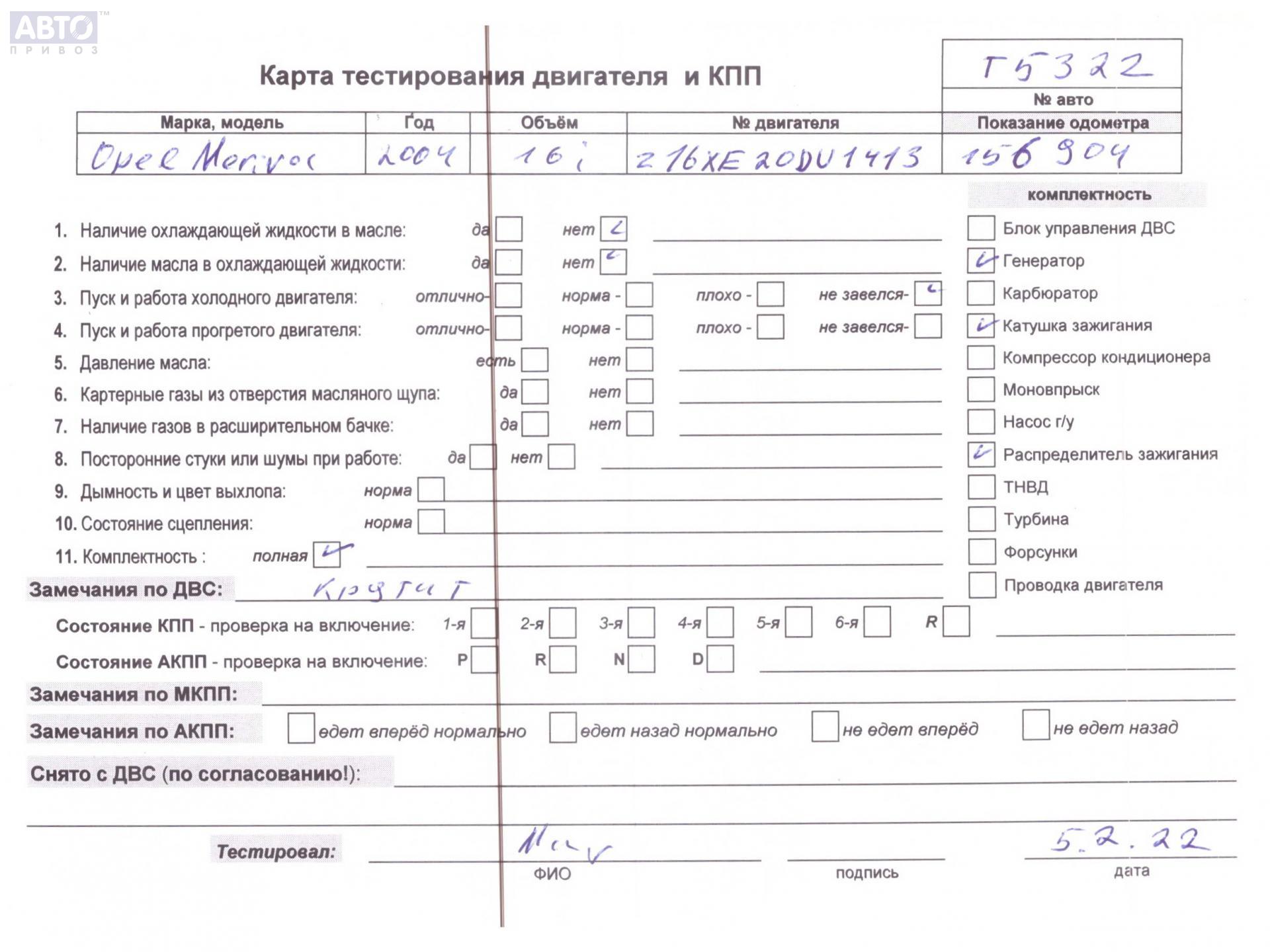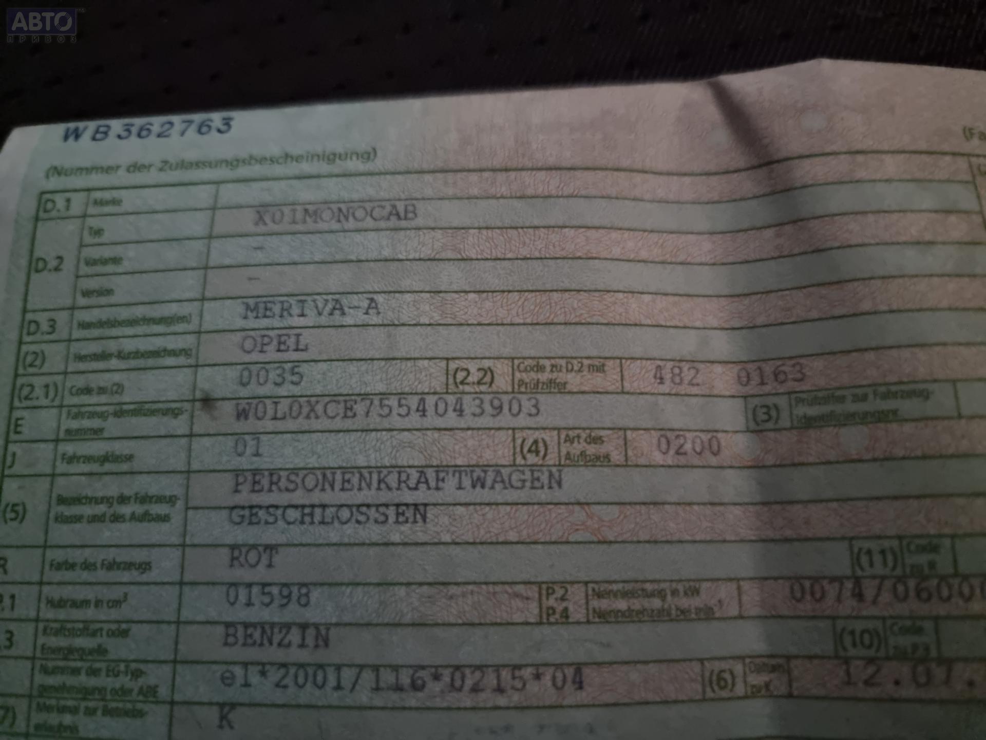 | Марка / Модель / Год: | Opel Meriva A (2003-2010) 2004 |
