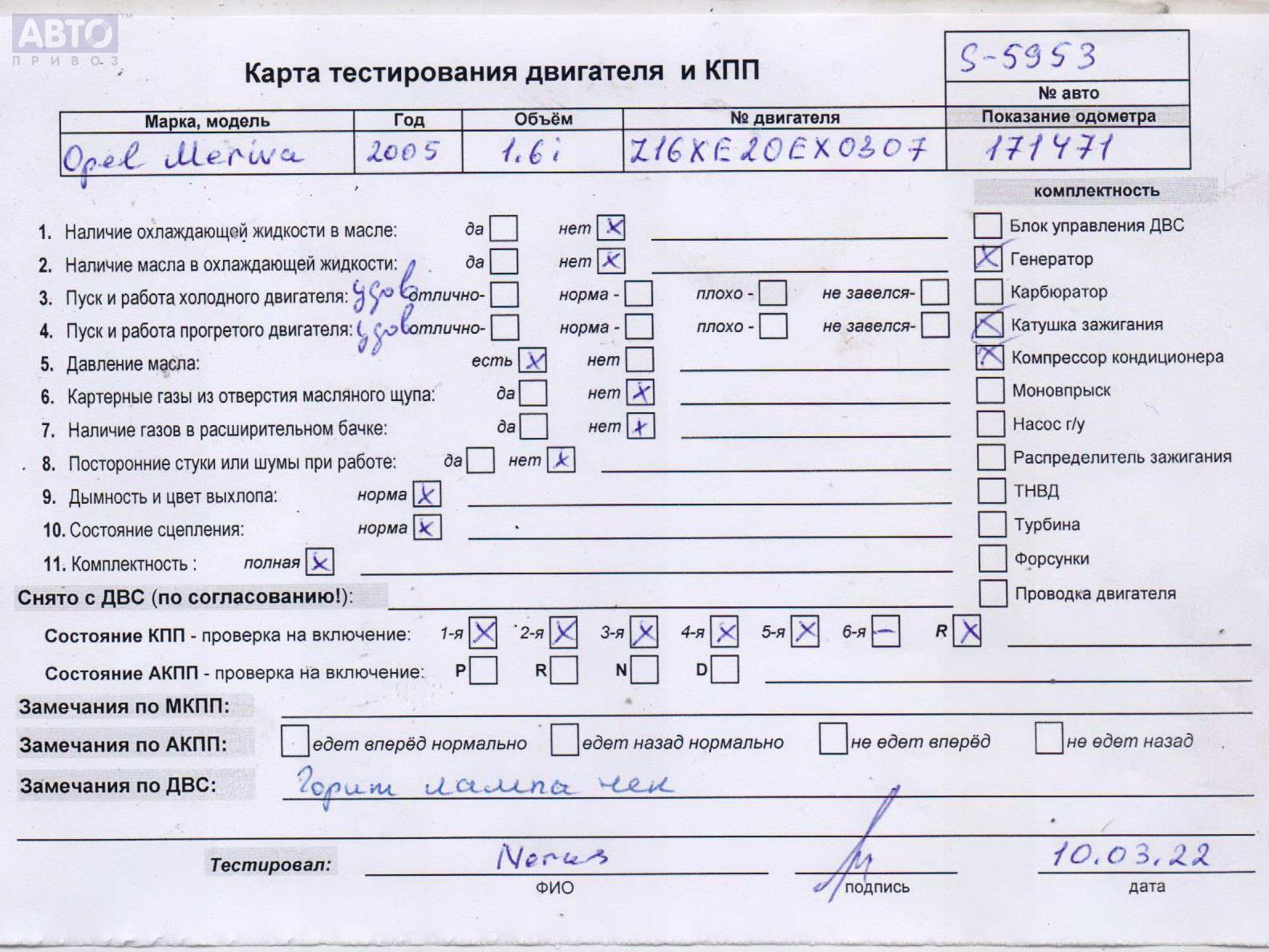 | Марка / Модель / Год: | Opel Meriva A (2003-2010) 2005 |