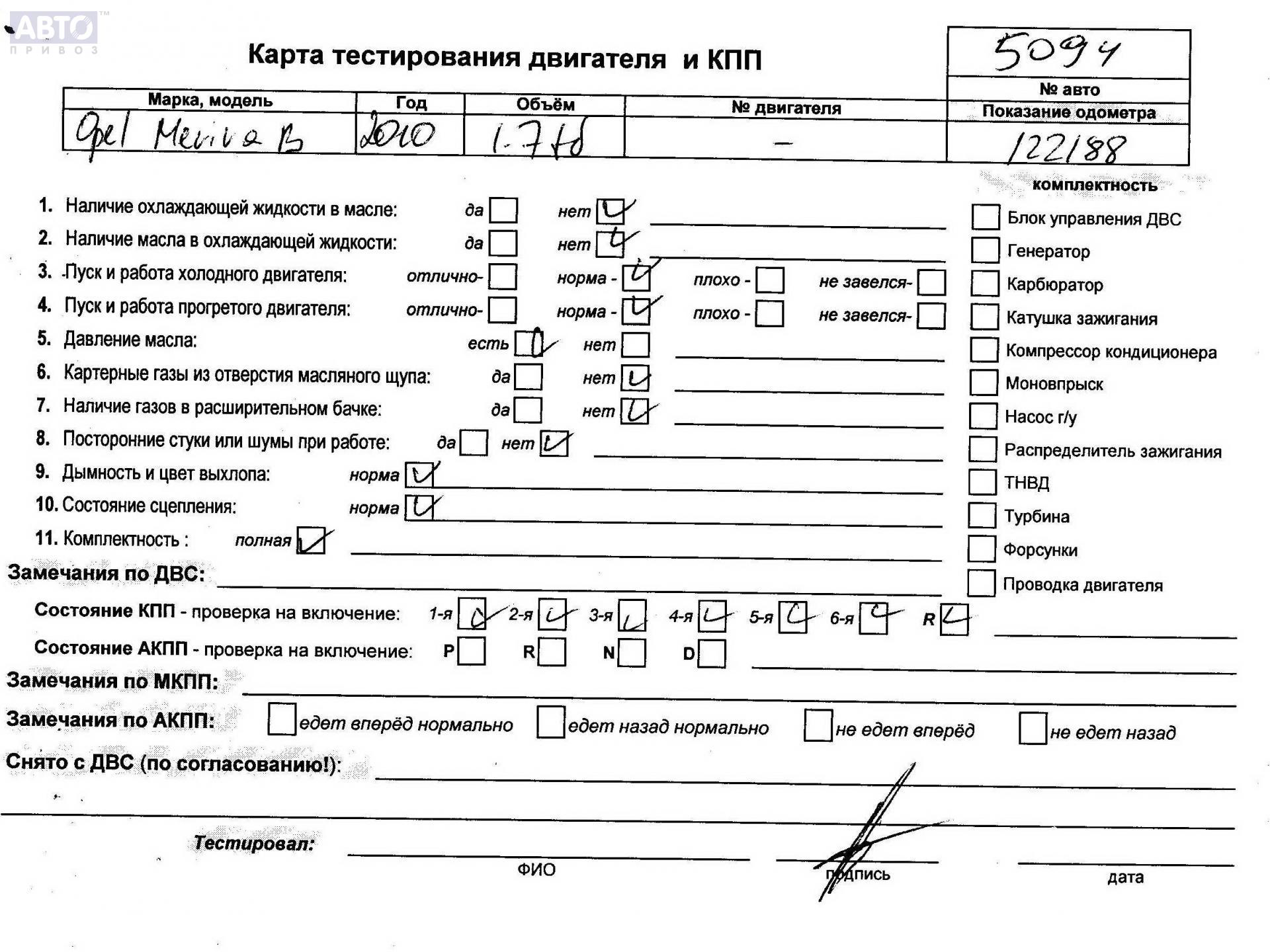 | Марка / Модель / Год: | Opel Meriva B (2010-2017) 2010 |