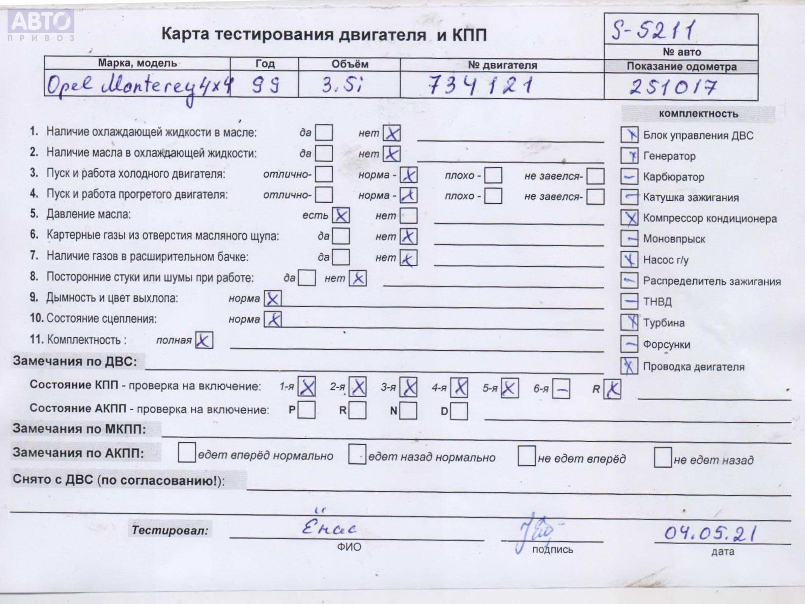 | Марка / Модель / Год: | Opel Monterey (1992-1999) 1999 |