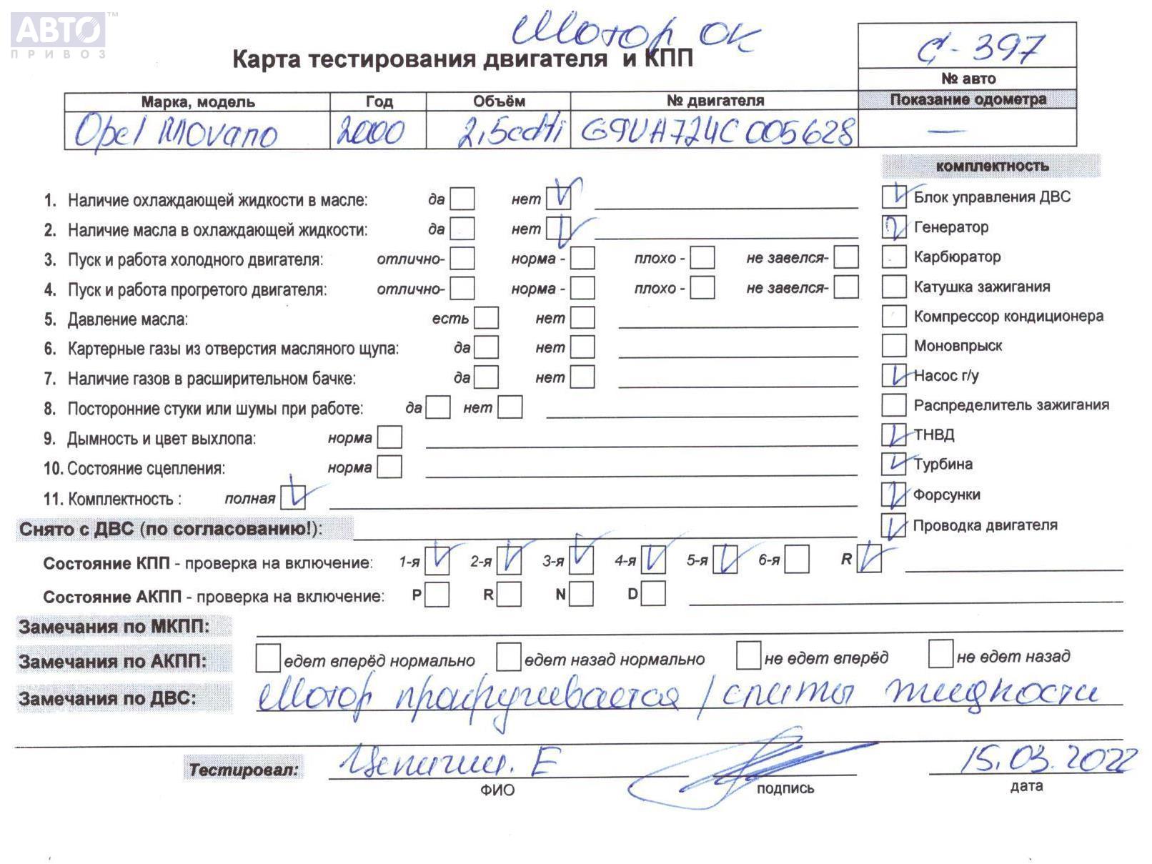 | Марка / Модель / Год: | Opel Movano A (1998-2010) 2003 |