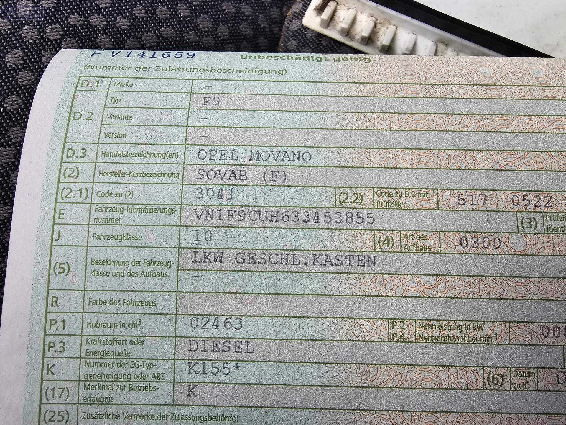 | Марка / Модель / Год: | Opel Movano A (1998-2010) 2005 |
