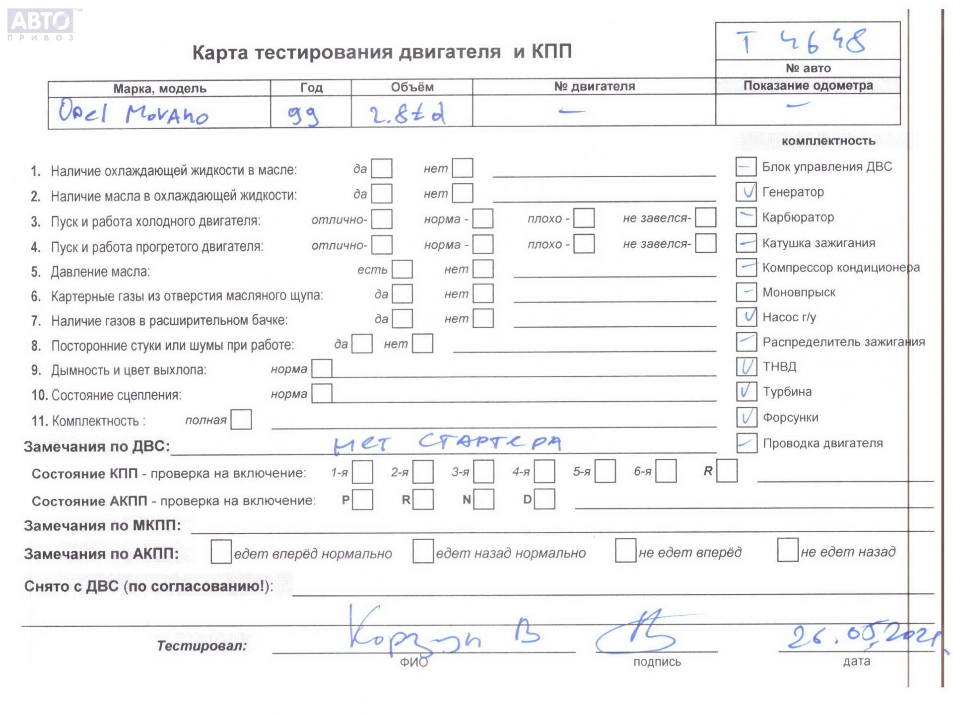 | Марка / Модель / Год: | Opel Movano A (1998-2010) 1999 |