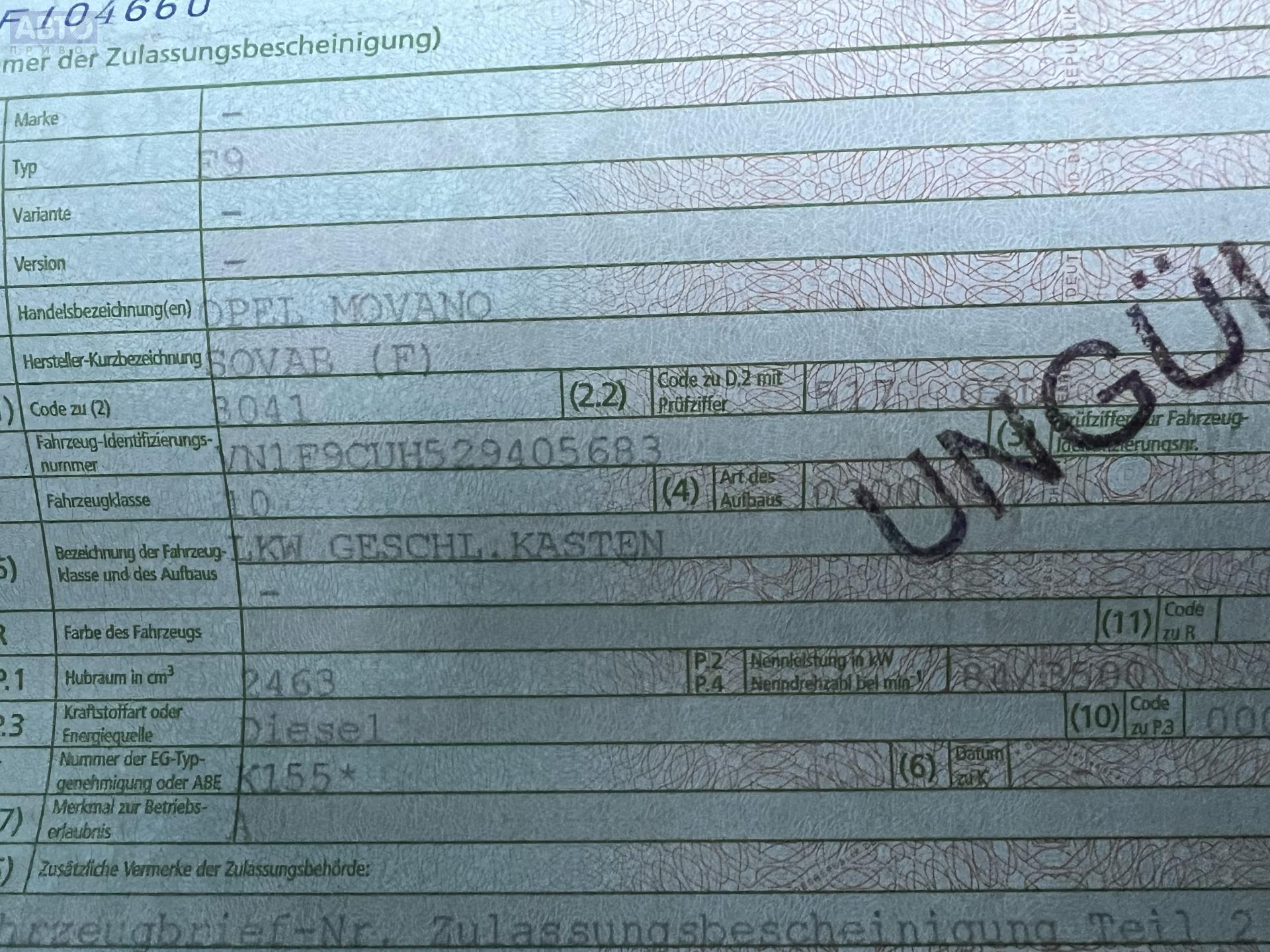 | Марка / Модель / Год: | Opel Movano A (1998-2010) 2003 |