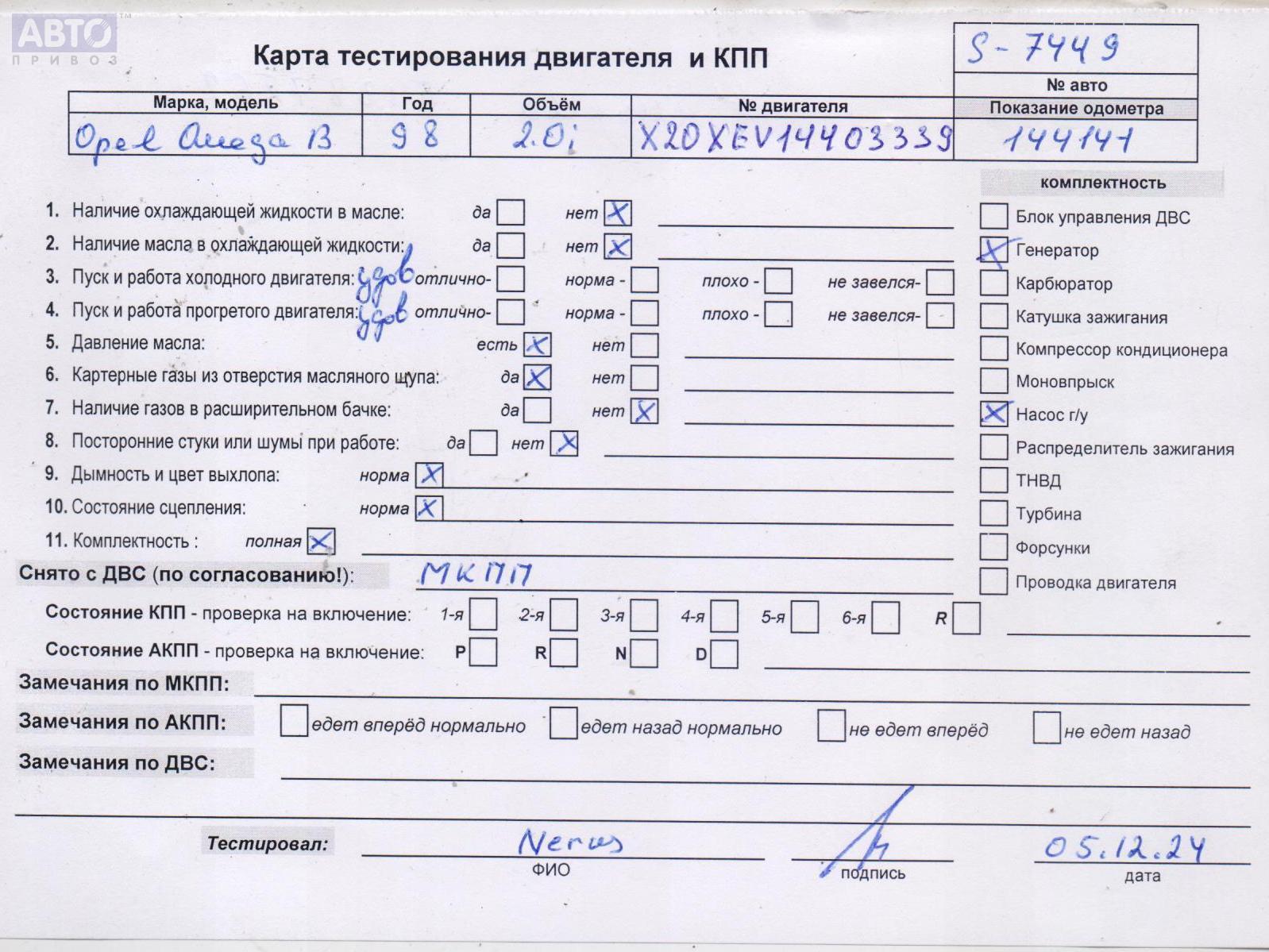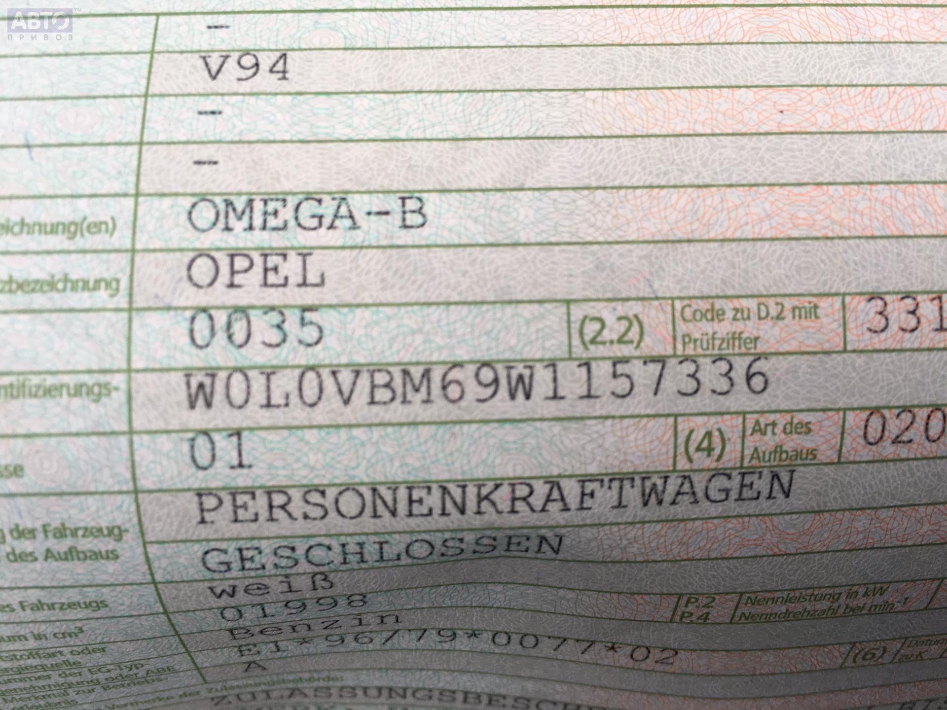 | Марка / Модель / Год: | Opel Omega B (1994-2003) 1998 |