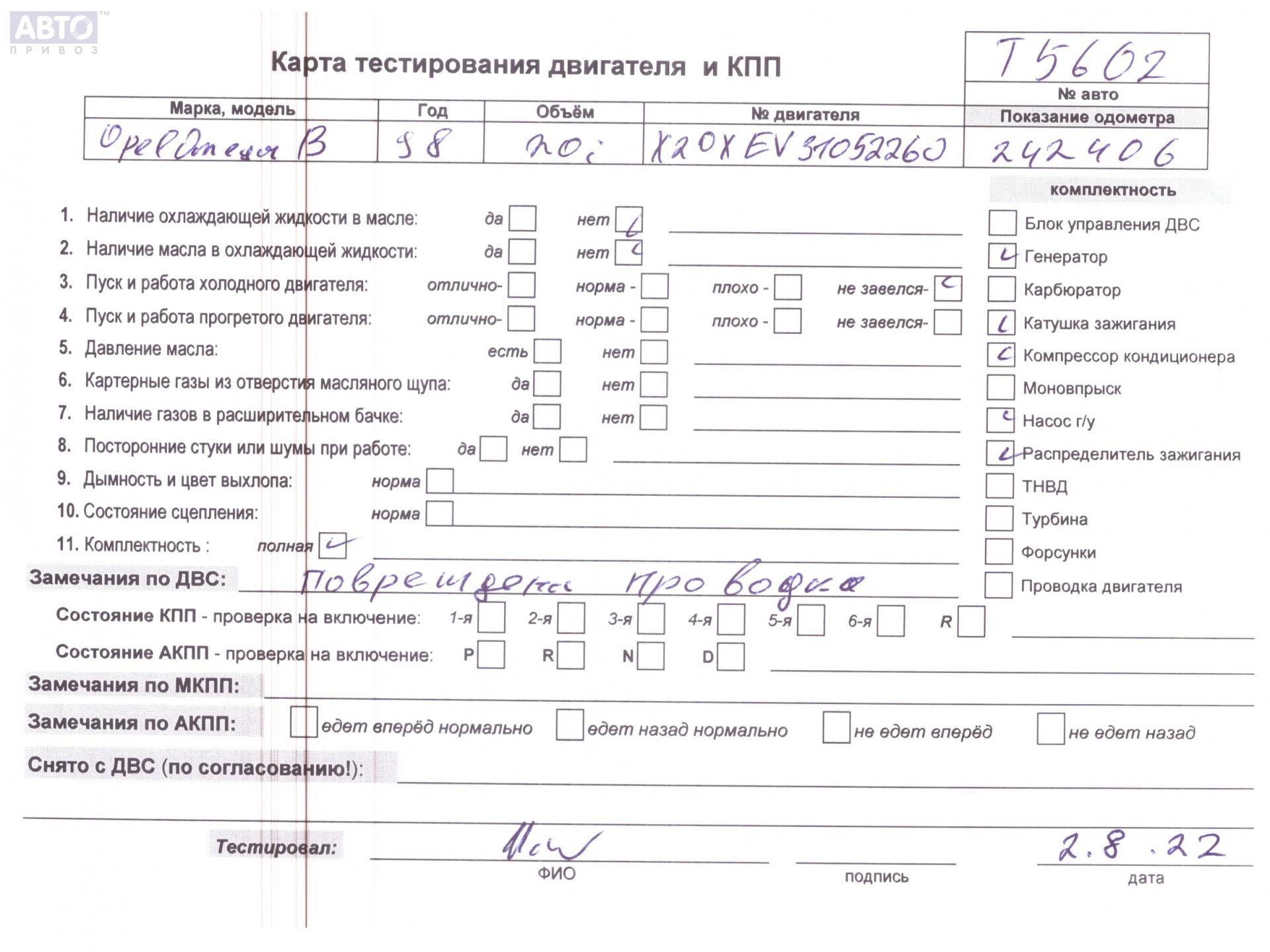| Автомобиль / VIN: | T5602 W0L0VBM35X1030036 |