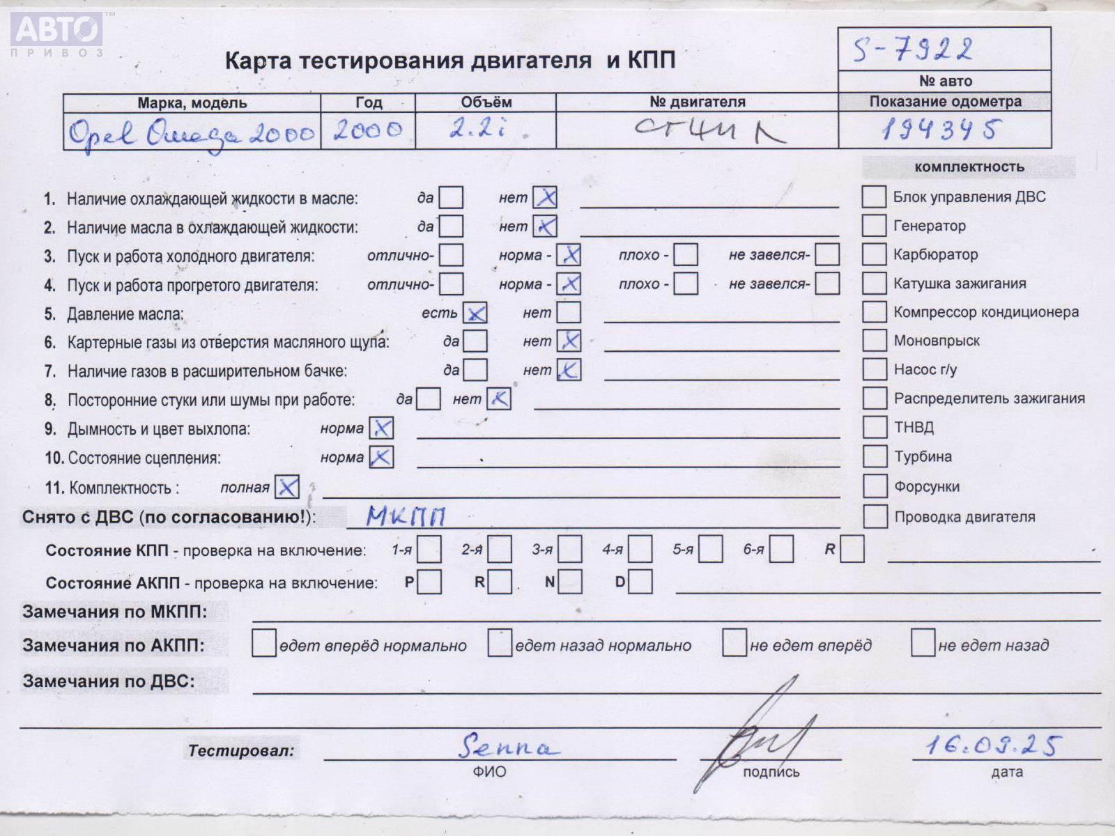 | Марка / Модель / Год: | Opel Omega B (1994-2003) 2000 |
