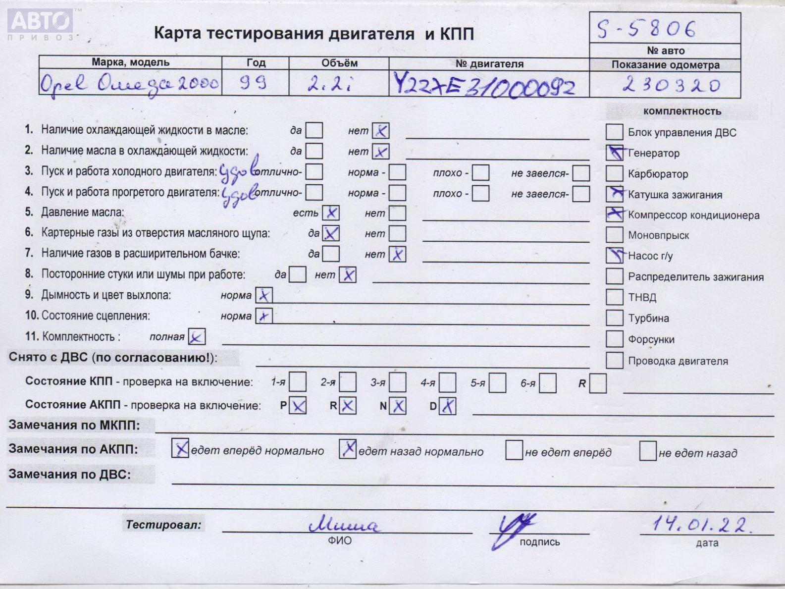 | Автомобиль / VIN: | S5806 W0L0VBM69Y1000221 |