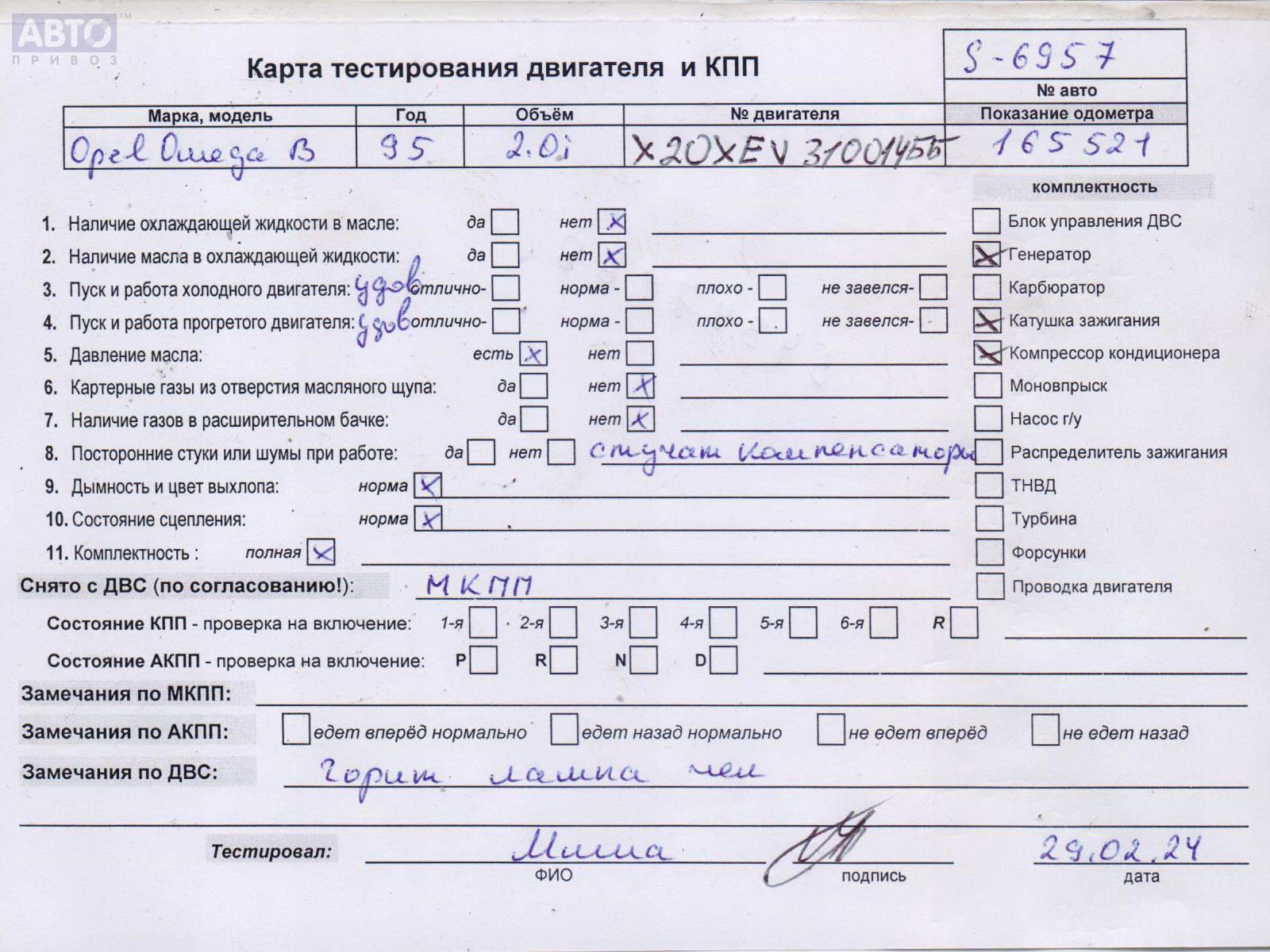 | Марка / Модель / Год: | Opel Omega B (1994-2003) 1995 |