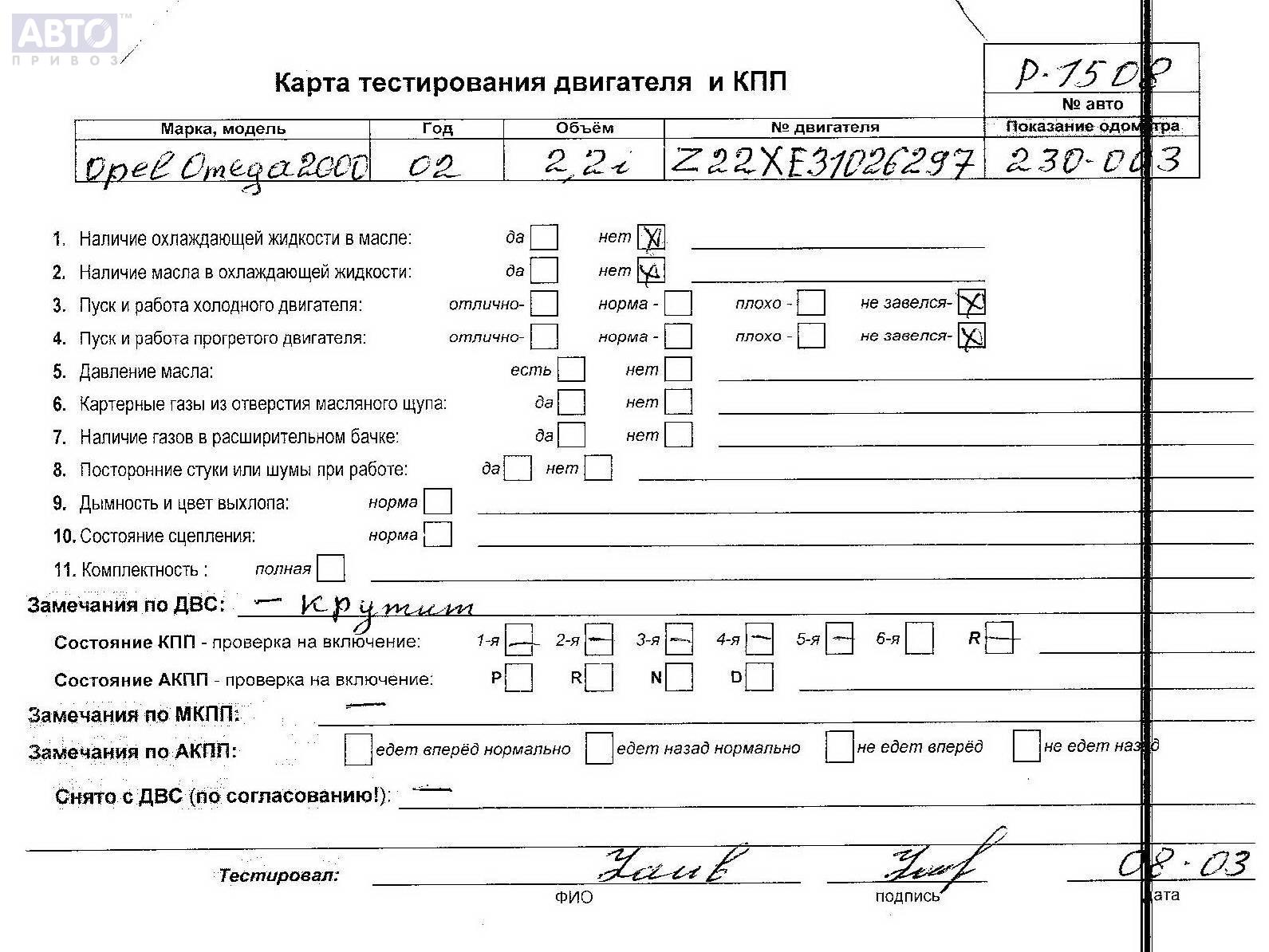 | Марка / Модель / Год: | Opel Omega B (1994-2003) 2002 |